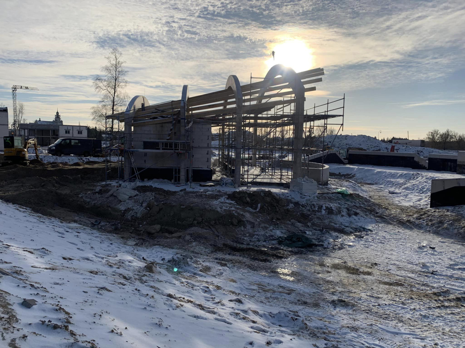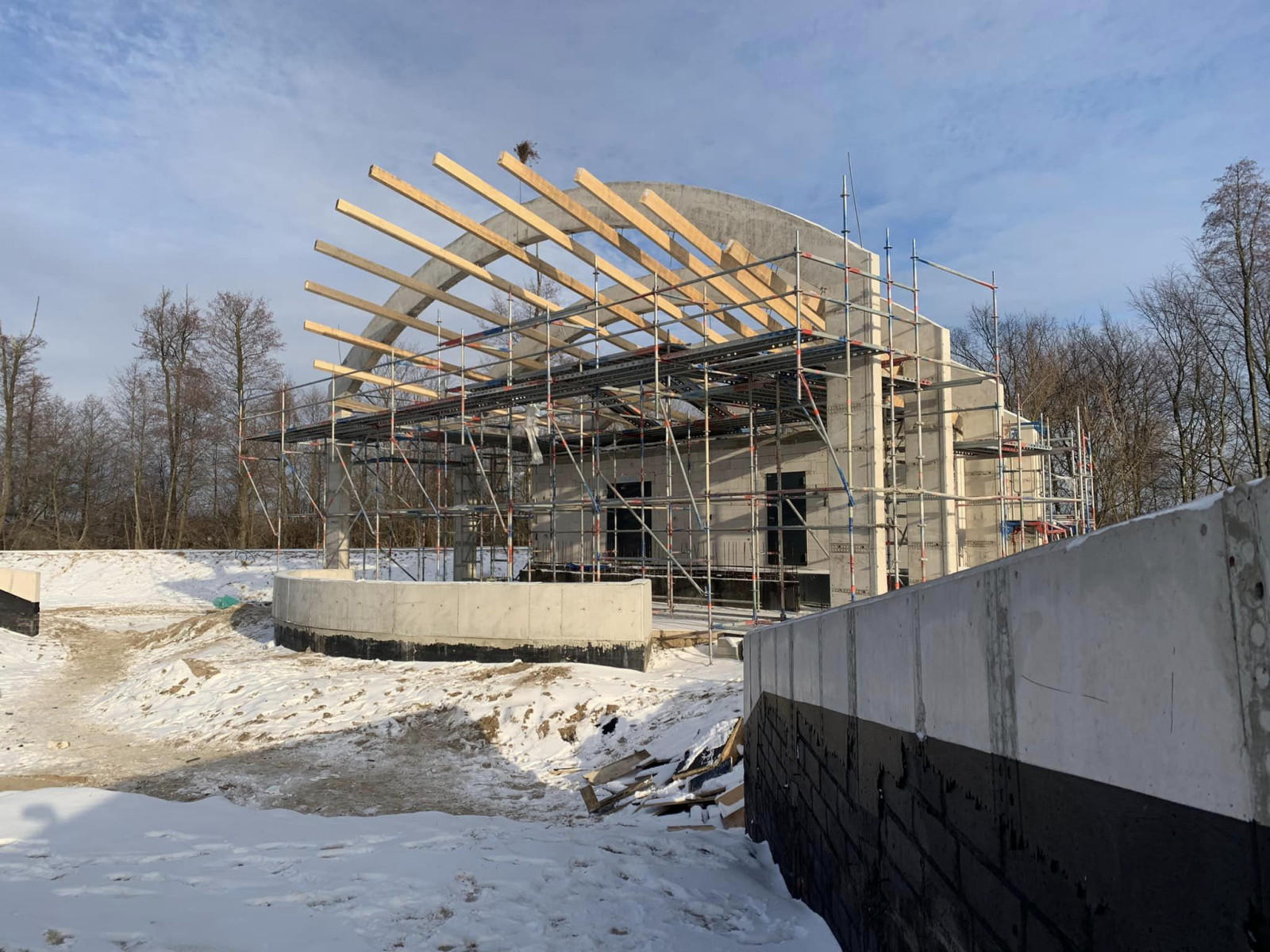 Postępy na budowie amfiteatru w Białobrzegach – zimowa aura nie krzyżuje planów wykonawców. Jest już szkielet dachu muszli koncertowej, ale nie tylko - mówi burmistrz Białobrzegów Adam Bolek.