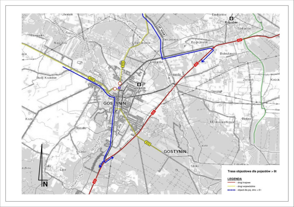 Dzisiaj o godz. 9.00 w Gostyninie zostanie wprowadzona tymczasowa organizacja ruchu w związku z budową dwóch rond w ciągu DW 265 i DW 573. Na skrzyżowaniu ulicy Jana Pawła II, alei ks. J. Popiełuszki i alei. S. Mikołajczyka powstanie rondo turbinowe, a na skrzyżowaniu ulic Bierzewieckiej, Jana Pawła II i Płockiej — rondo jednopasmowe. Roboty potrwają do końca listopada. Dla kierowców wyznaczono objazdy.