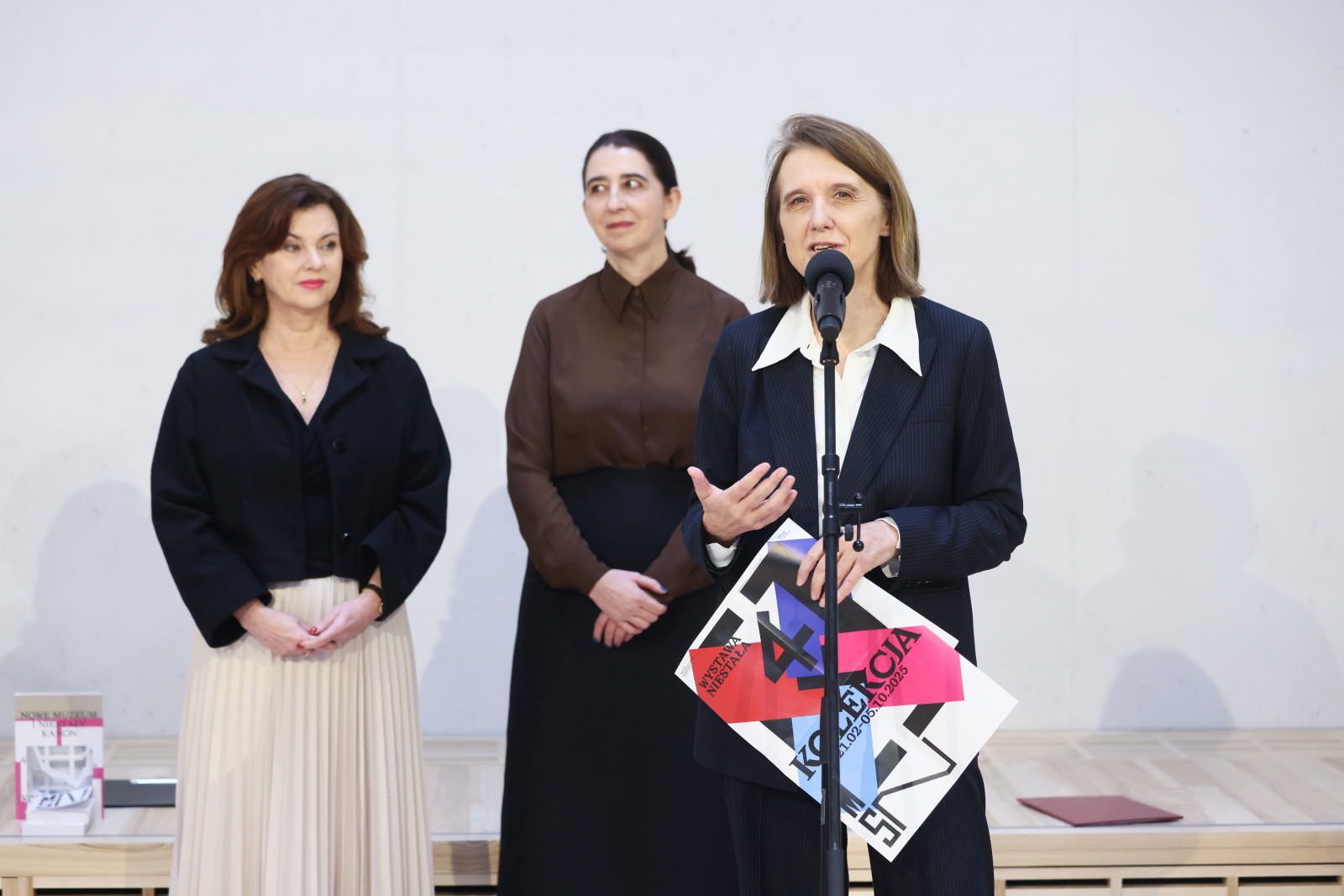 Zaznaczyła, że otwierana właśnie wystawa zaprezentuje „cztery odsłony, cztery rozdziały i cztery interpretacje kolekcji”. – To kolekcja, która zawiera prace z kilku dekad, od połowy XX wieku. Mówi w pewnym sensie o przeszłości, ale tak naprawdę interpretacja tej kolekcji i wystawa są wychylone ku przyszłości – podkreśliła.