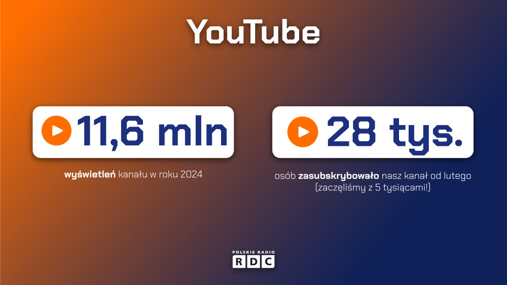 Mogą nas Państwo nie tylko słuchać, ale także oglądać. Nasz kanał na YouTube w tym roku był przez Państwa wyświetlony ponad 11,5 mln razy. Znacznie wzrosła również liczba subskrybentów. Dziękujemy!