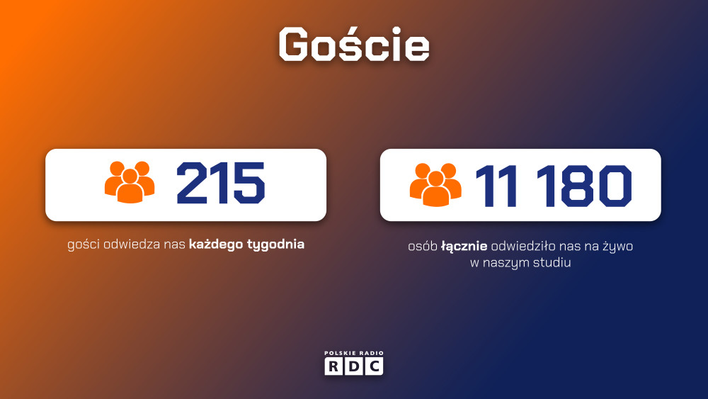 Każdego tygodnia odwiedza nas średnio 215 osób, co daje 11 180 gości na żywo w naszym studiu w tym roku. Byli u nas między innymi Maryla Rodowicz i Dawid Kwiatkowski, Kasia Kowalska, Kamil Bednarek, Monika Borzym, Krystyna Prońko, Joanna Jakubas czy Krzysztof Ścierański.