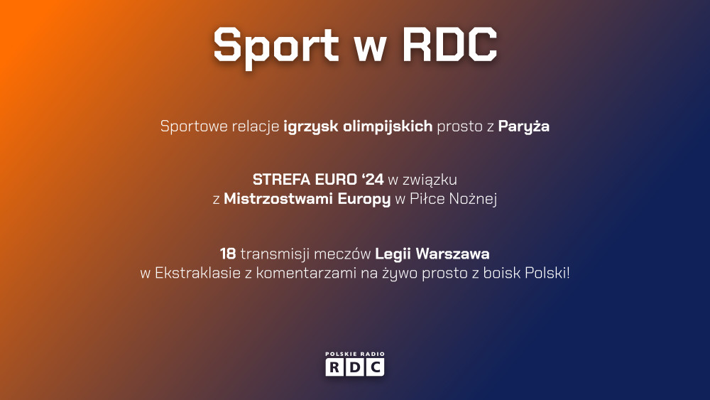 Polskie Radio RDC to również sportowe emocje. Relacjonowaliśmy dla Państwa igrzyska olimpijskie prosto z Paryża, mecze Mistrzostw Europy w Piłce Nożnej w ramach audycji „Strefa Euro'24”, a także jesteśmy z Państwem na każdym meczu Legii Warszawa. Na naszej antenie mogą Państwo posłuchać relacji prosto z boisk w całej Polsce.
