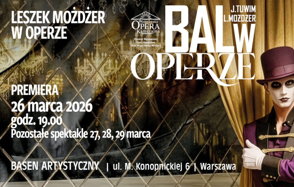„Bal w operze” – najbardziej znany poemat satyryczny Juliana Tuwima – powraca w nowej, bezkompromisowej odsłonie jako widowisko muzyczno-teatralne na styku opery, performansu i współczesnego teatru. Zadebiutuje w Warszawskiej Operze Kameralnej 26 marca br.