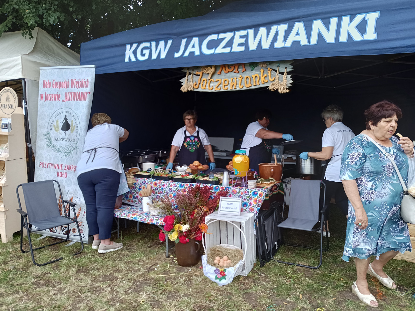 — Pierogi z ziemniakami, kapustą, krokiety, pierogi z mięsem, ciasta, pączki. Własny smalec, ogórki małosolne własnej produkcji. Wszystko natura, z naszych ogródków, nasze regionalne produkty — mówi Jadwiga Żuk z KGW Jaczewianki z Jaczewa.