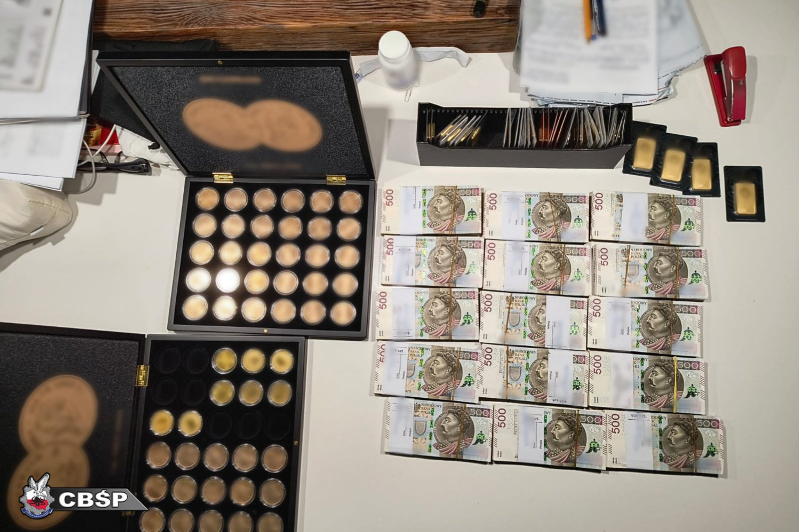 — Podczas przeszukania mieszkań jednego z liderów grupy znaleziono i zabezpieczono złoto inwestycyjne oraz złote monety kolekcjonerskie o szacunkowej wartości około miliona złotych, a także pieniądze w różnych walutach, również o wartości blisko miliona złotych — przekazał rzecznik CBŚP Krzysztof Wrześniowski.