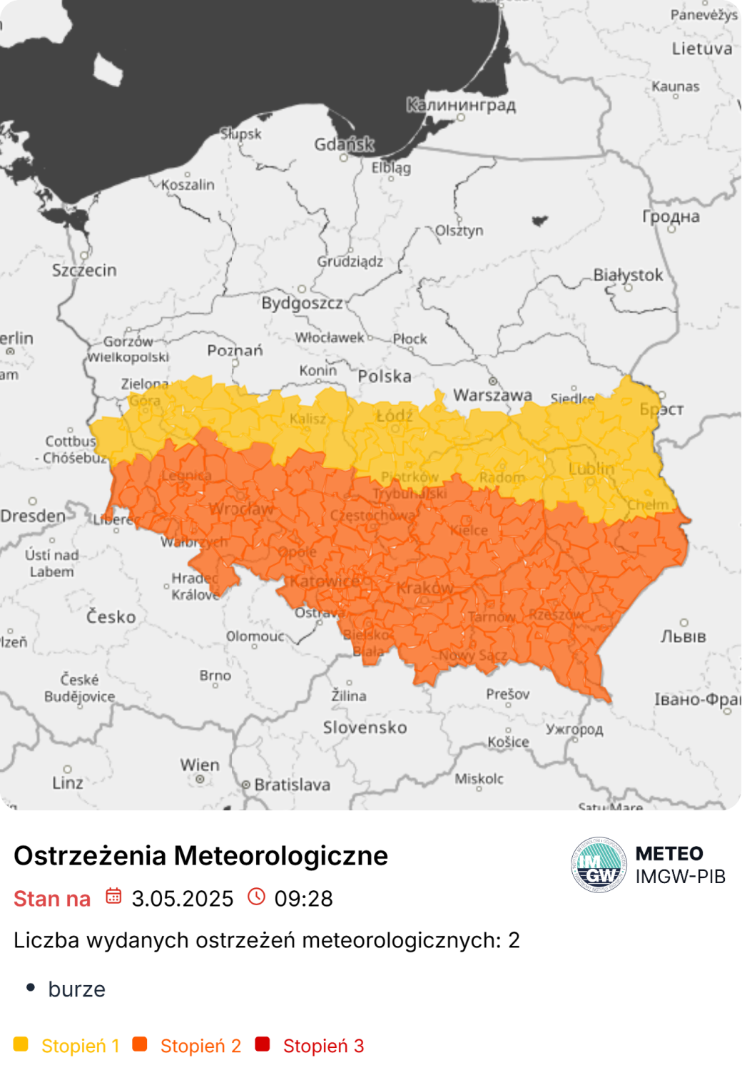 W przypadku każdych ostrzeżeń zalecana jest ostrożność i śledzenie komunikatów o rozwoju sytuacji pogodowej.