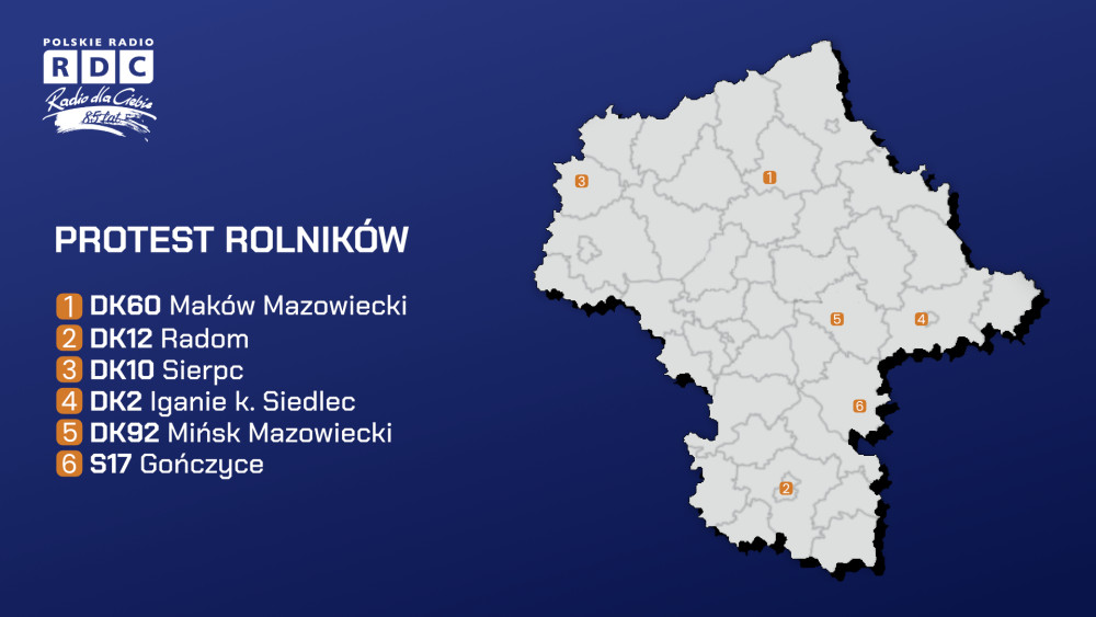 – Uczestnicy protestu będą blokować rondo w miejscowości Ryczołek, a także wjazdy na autostradę A2. Kolejnym punktem blokady będzie rondo w Mińsku Mazowieckim przy ulicy Warszawskiej, Wiśniowej i Stanisławowskiej, a także rondo w miejscowości Stojadła, skrzyżowanie dróg 92 i DK nr 50 – podawała Elżbieta Zagórska z mińskiej policji.
