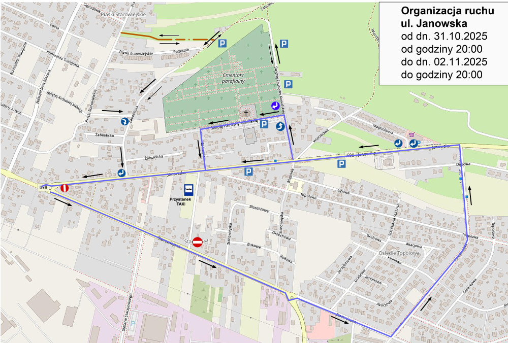 Na ulicy Zamkowej (odcinek od skrzyżowania z ul. Gostkowską do skrzyżowania z ul. Parkową) w okresie: piątek (31 października, godz. 15.00) – poniedziałek (3 listopada, godz. 8.00) – obowiązywał będzie ruch jednokierunkowy.