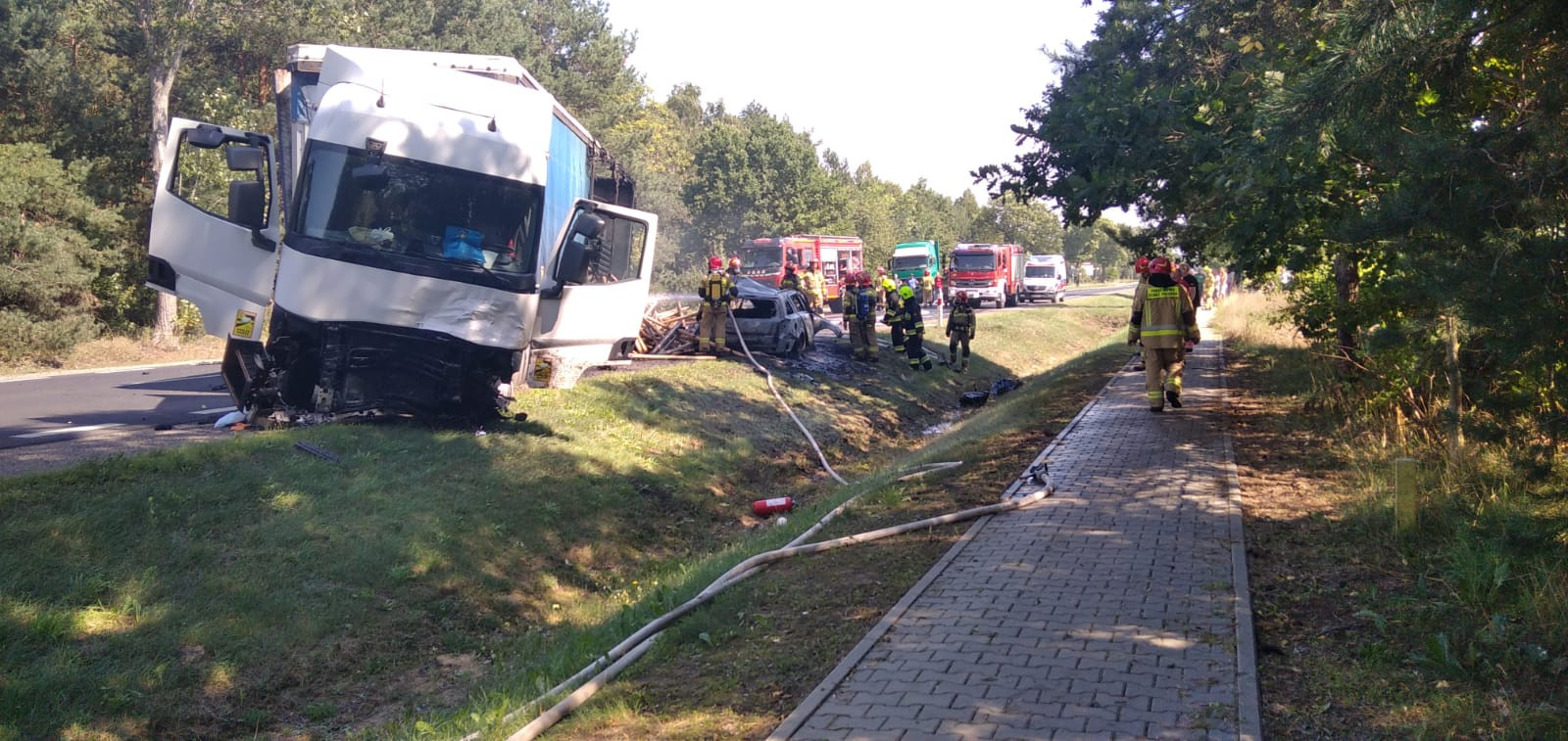 Zderzenie auta osobowego z ciężarówką na drodze do Radomia. Jedna osoba nie żyje