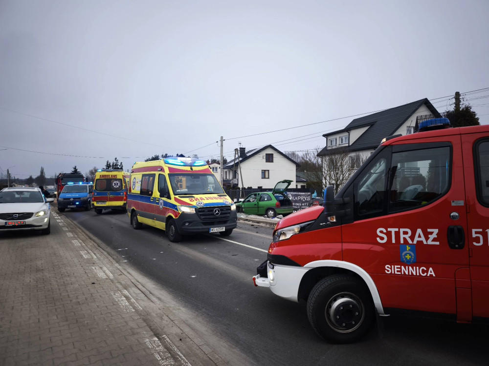 Jak informuje Ochotnicza Straż Pożarna w Siennicy, kierujący pojazdem marki Volvo, będący w stanie nietrzeźwości, uderzył w Opla Corsę.