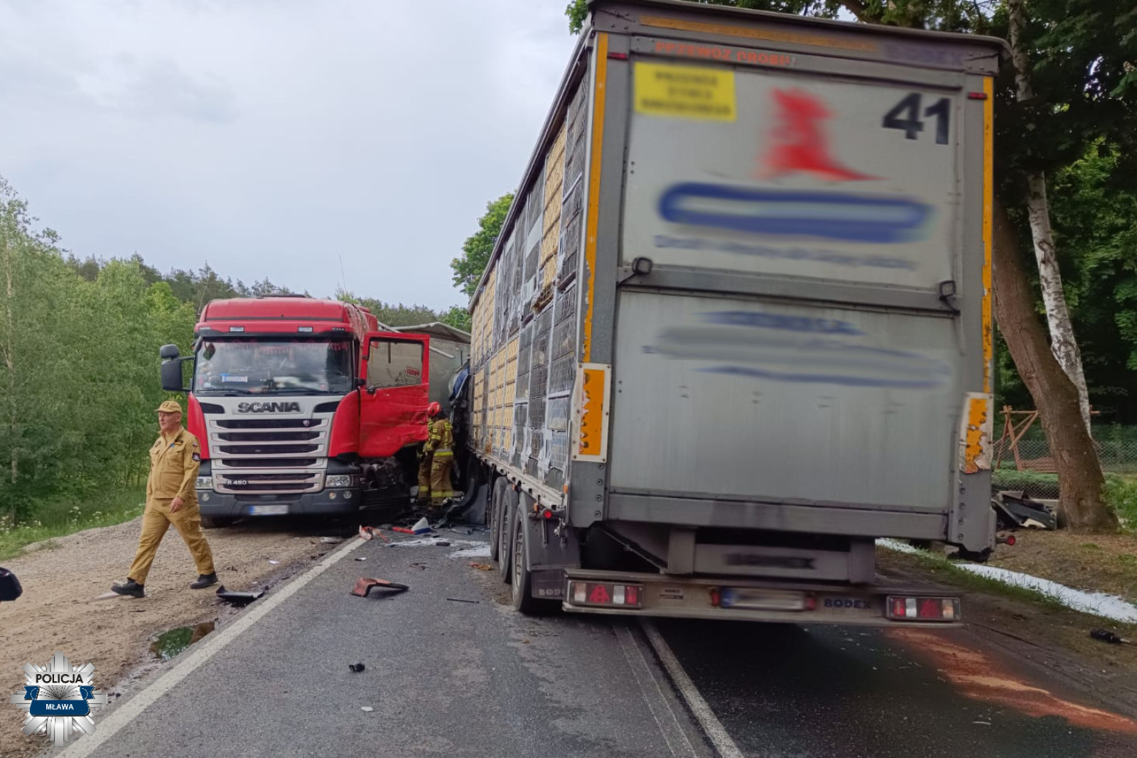 Zderzenie dwóch ciężarówek koło Mławy. Nie żyje kierowca