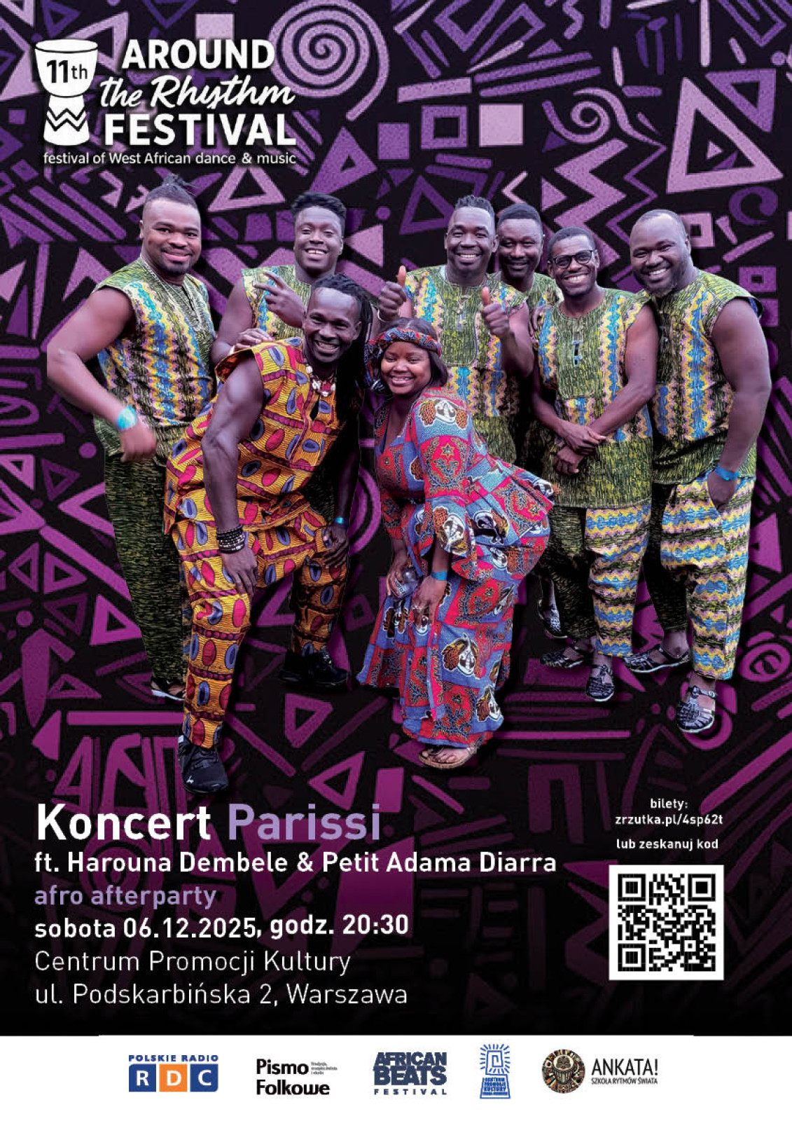 Na repertuar zespołu Parissi składają się utwory pochodzące z rejonów Burkina Faso, Mali oraz Wybrzeża Kości Słoniowej. Artyści przeniosą publiczność w sam środek gorącej Afryki – tam, gdzie dźwięki djembe, dundunów, balafonów i kamele n’goni spotykają się z improwizacją i radością wspólnego grania. Całość wzbogaci wspaniały śpiew oraz zachwycający taniec, które wprowadzą publiczność w autentyczny klimat afrykańskiego święta. Będzie to widowisko, które porwie do tańca i pozwoli poczuć prawdziwe brzmienie Afryki.