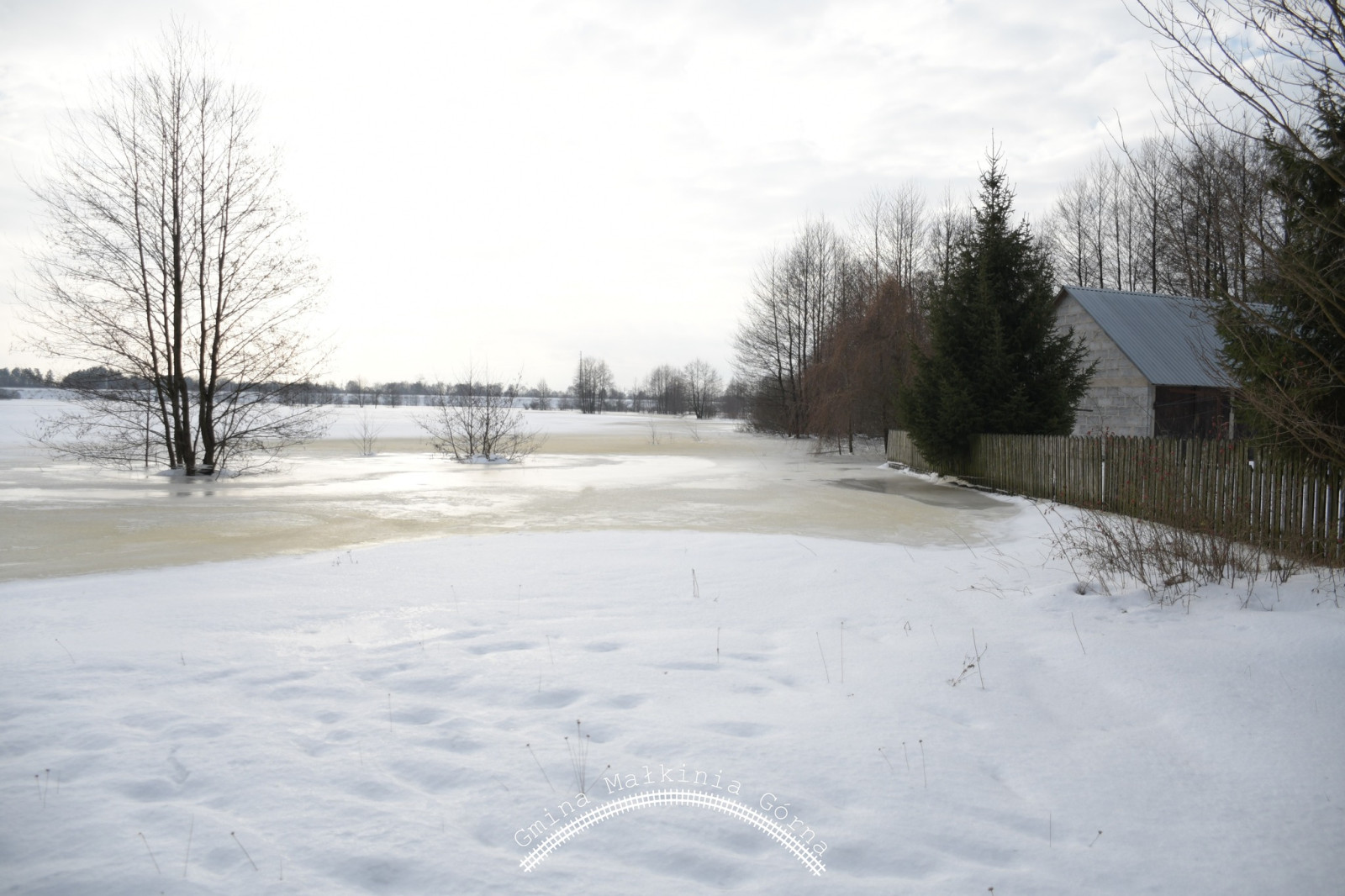 Woda w Małkini z powodu lodu nie ma gdzie spływać.