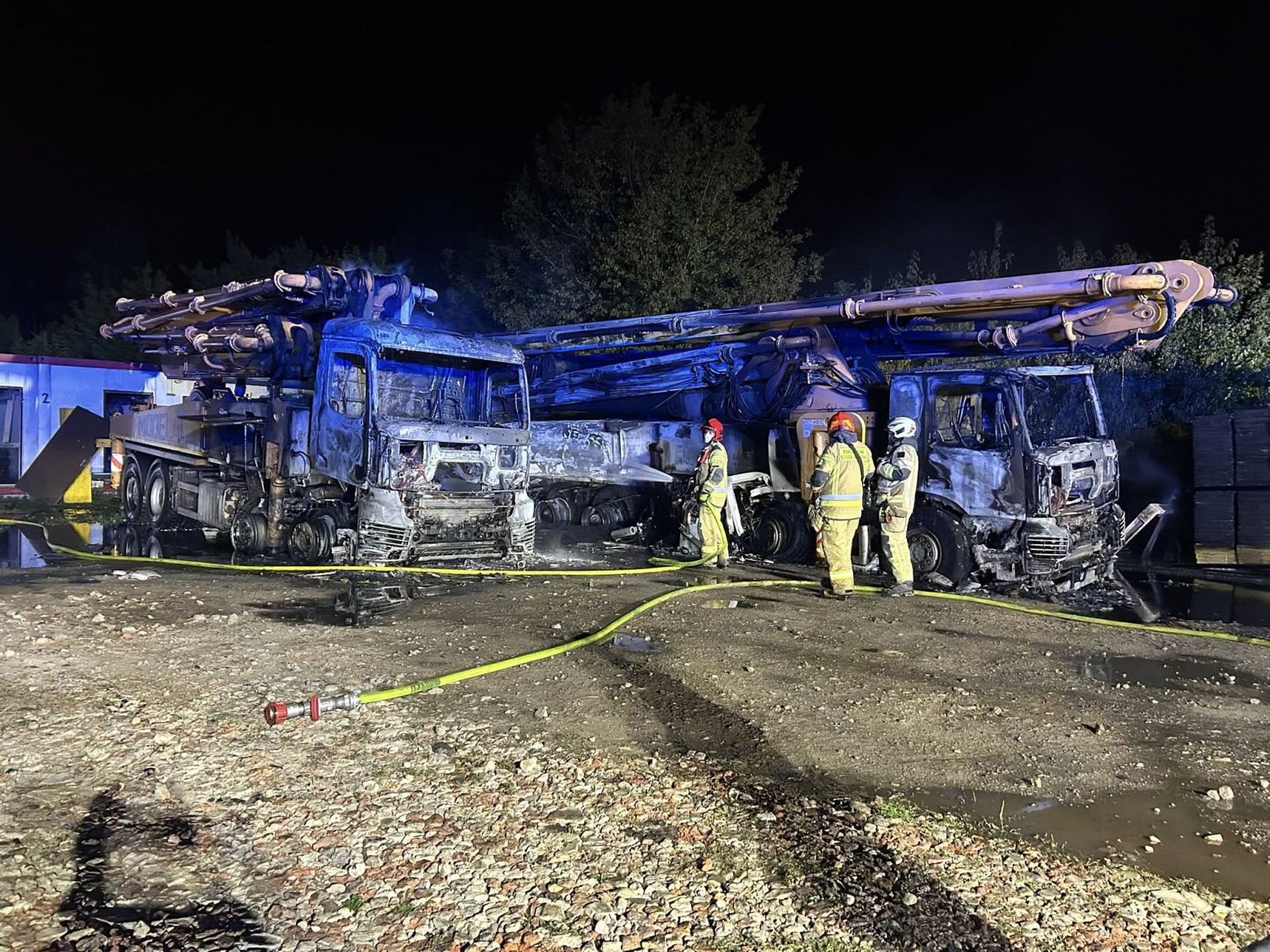 „Pożarem objęte były dwa pojazdy specjalistyczne do podawania betonu, które uległy całkowitemu spaleniu. Działania strażaków polegały na podaniu prądów wody i piany na palące się pojazdy oraz w obronie pobliskich obiektów” – przekazano w komunikacie.