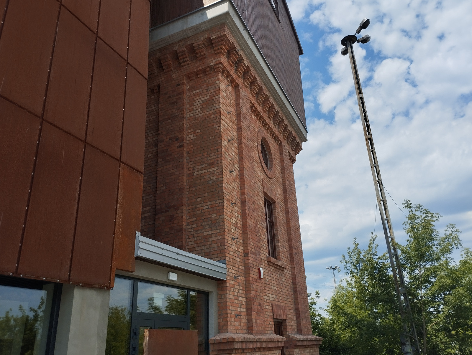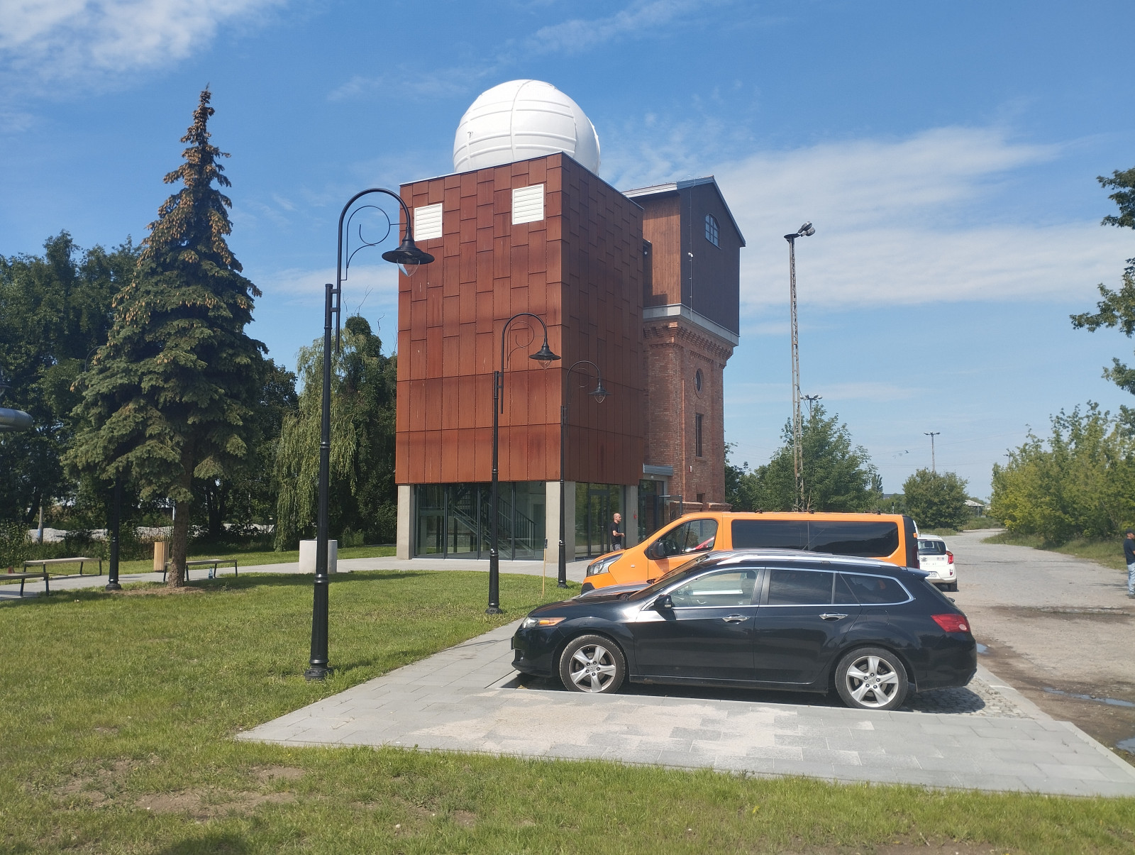 Planetarium i obserwatorium w Płońsku powstały w budynku po dawnej wieży ciśnień oraz sąsiadującym z nią nowym obiekcie przy byłym dworcu PKP.