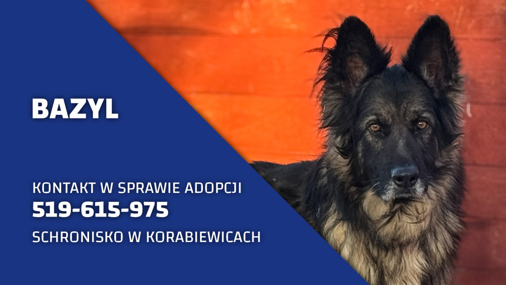 Bazyl to piękny, delikatny i wrażliwy pies w typie owczarka niemieckiego. Potrzebuje domu na już! Przyjechał do Schroniska w Korabiewicach po śmierci swojego opiekuna, razem z czterema innymi psami. One mieszkały w domu, spały pod kołdrą, Bazyl - sam w budzie.