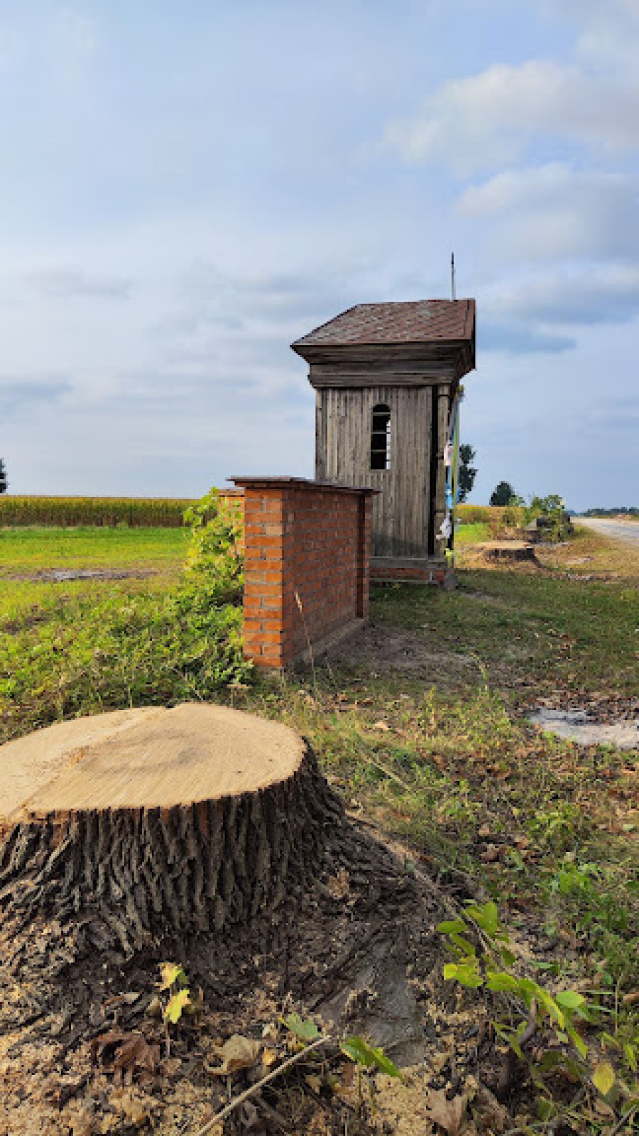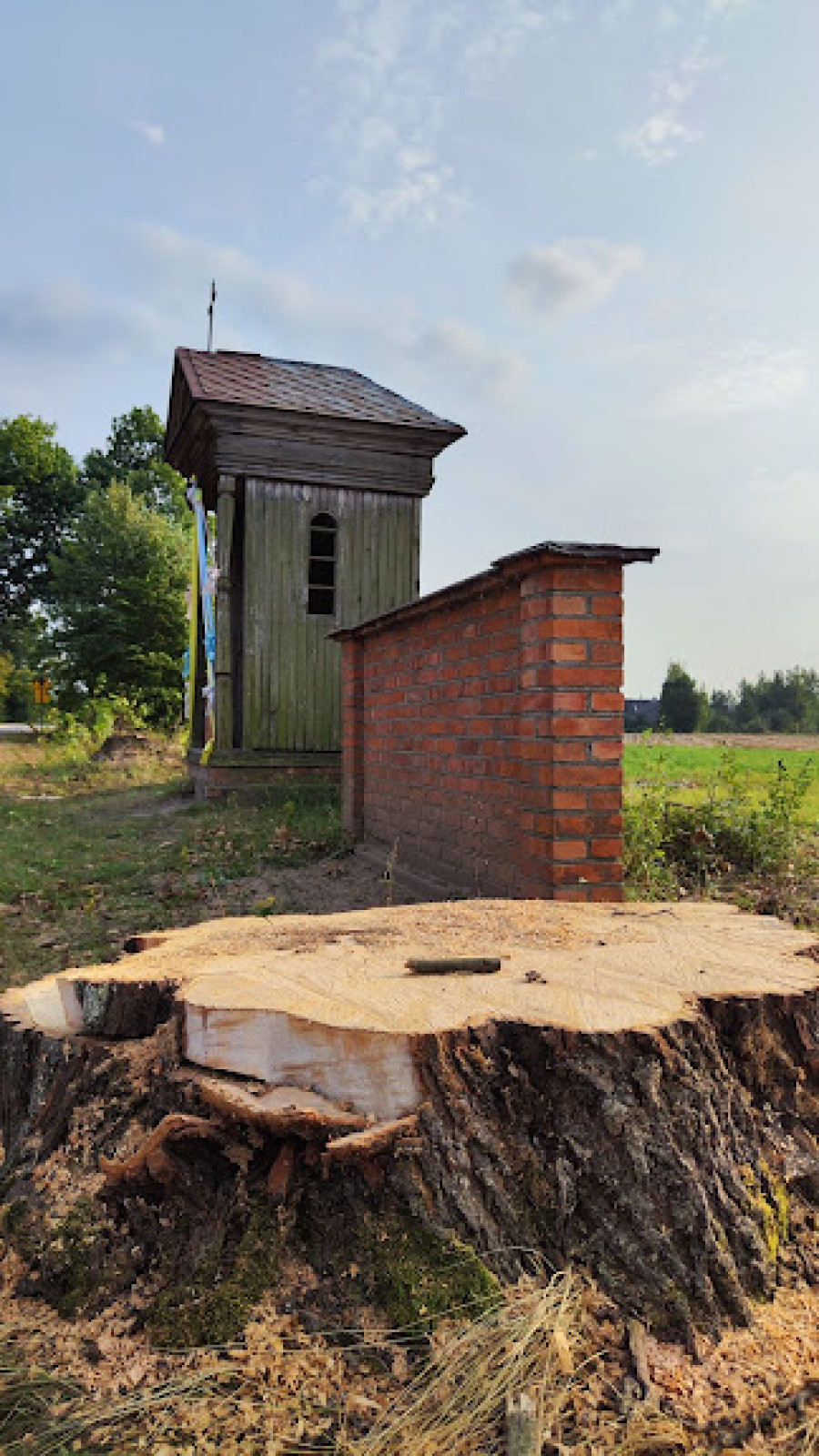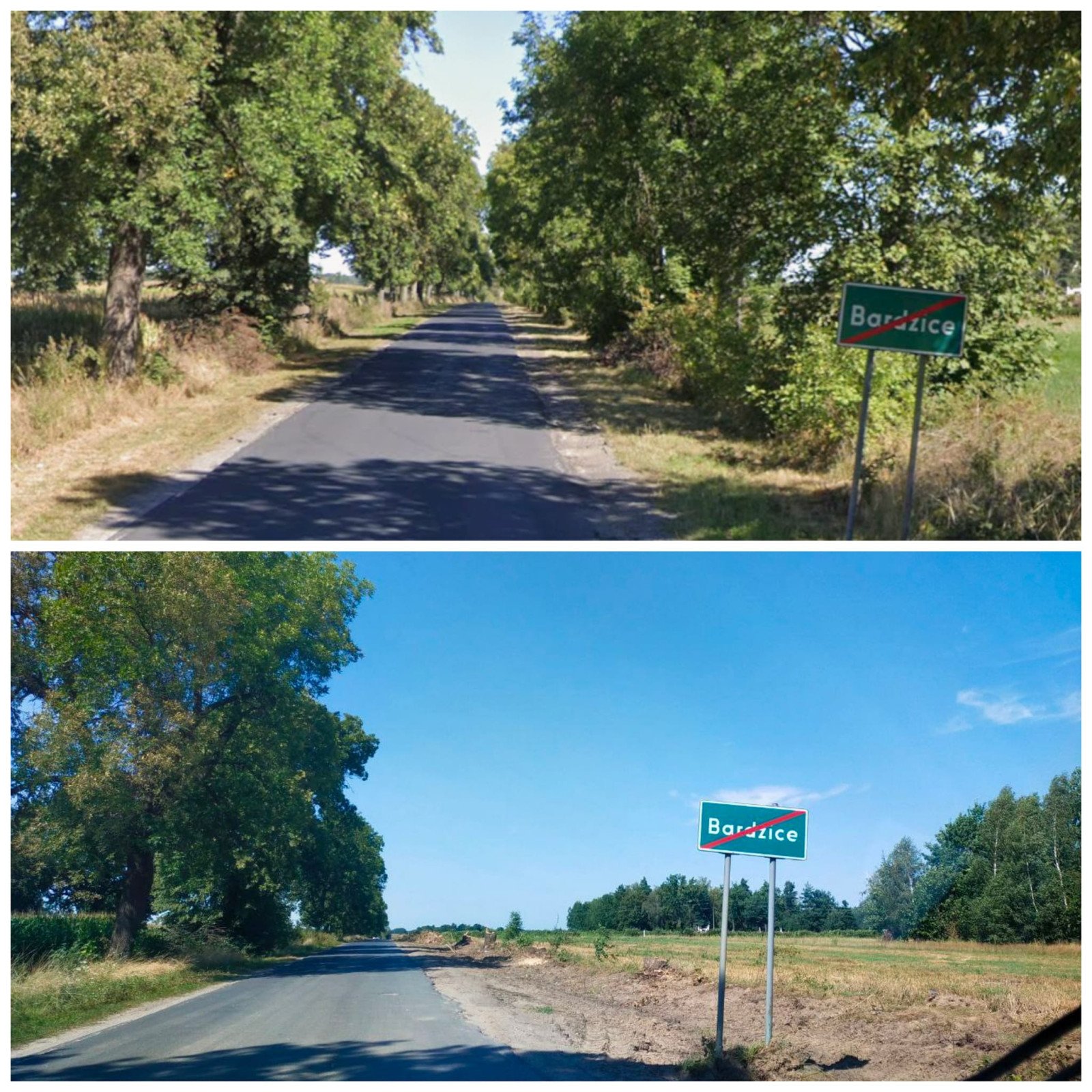 Na terenie budowanej drogi powiatowej Gębarzów — Polany nieznany sprawca wyciął dwa stare drzewa przy kapliczce w Bardzicach. Miejsce to wpisuje się w krajobraz sąsiadującego zabytkowego kościoła.