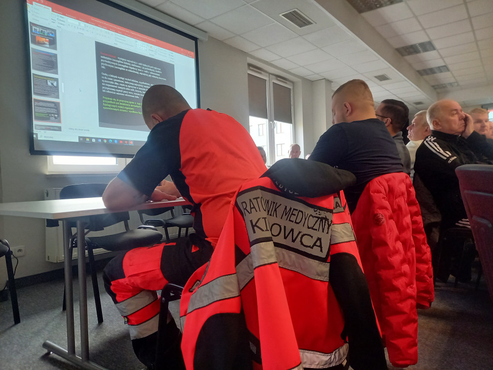 Ratownicy z Radomskiej Stacji Pogotowia Ratunkowego przechodzą w Komendzie Wojewódzkiej Policji w Radomiu szkolenia dotyczące tego, jak mają postępować z niebezpiecznymi i trudnymi pacjentami podczas swojej pracy.