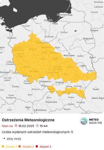 Instytut Meteorologii i Gospodarki Wodnej wydał ostrzeżenia I stopnia przed silnym mrozem w 12 województwach. W zachodniej części Polski alerty mogą potrwać nawet do środy.