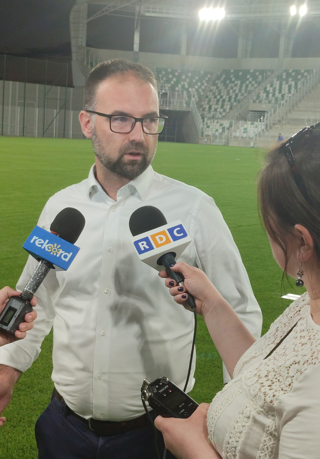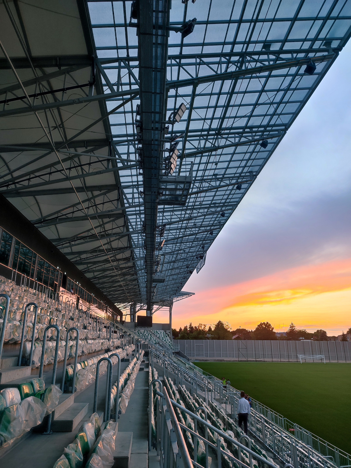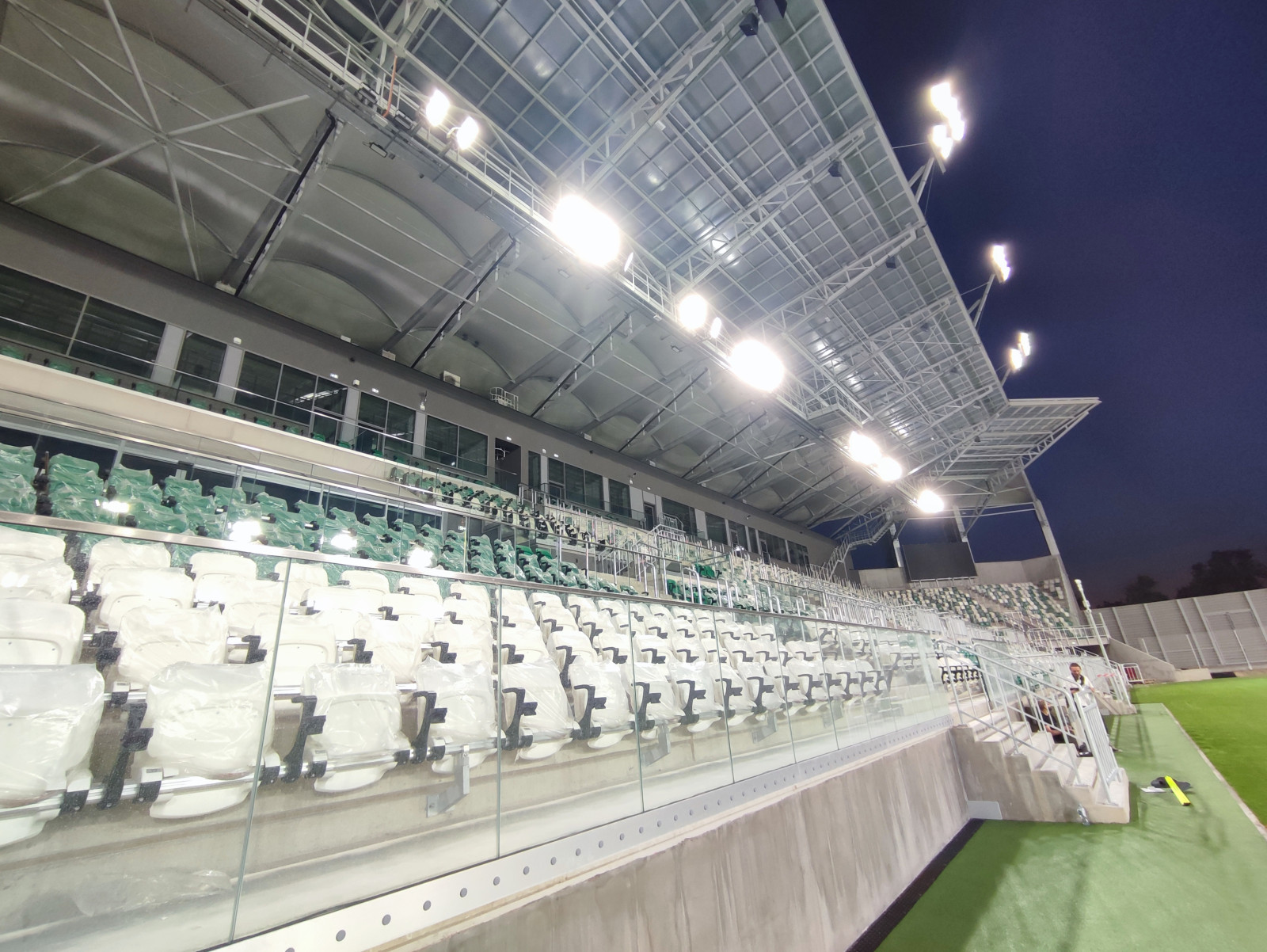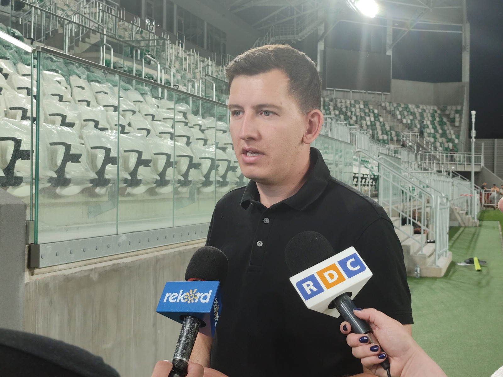 — Rozpoczęliśmy montaż systemu oznakowania stadionu, czyli to, żebyśmy na ścianach mieli wskazane, który sektor jest który, żebyśmy mieli wymalowane numery rzędów. Trwa spięcie systemu monitoringu do końca, żeby to wszystko razem funkcjonowało, by w pomieszczeniach bezpieczeństwa to wszystko było zgrane, tak aby na tym stadionie można było odbywać mecze piłkarskie przy udziale publiczności w sposób bezpieczny i pewny — dodaje.