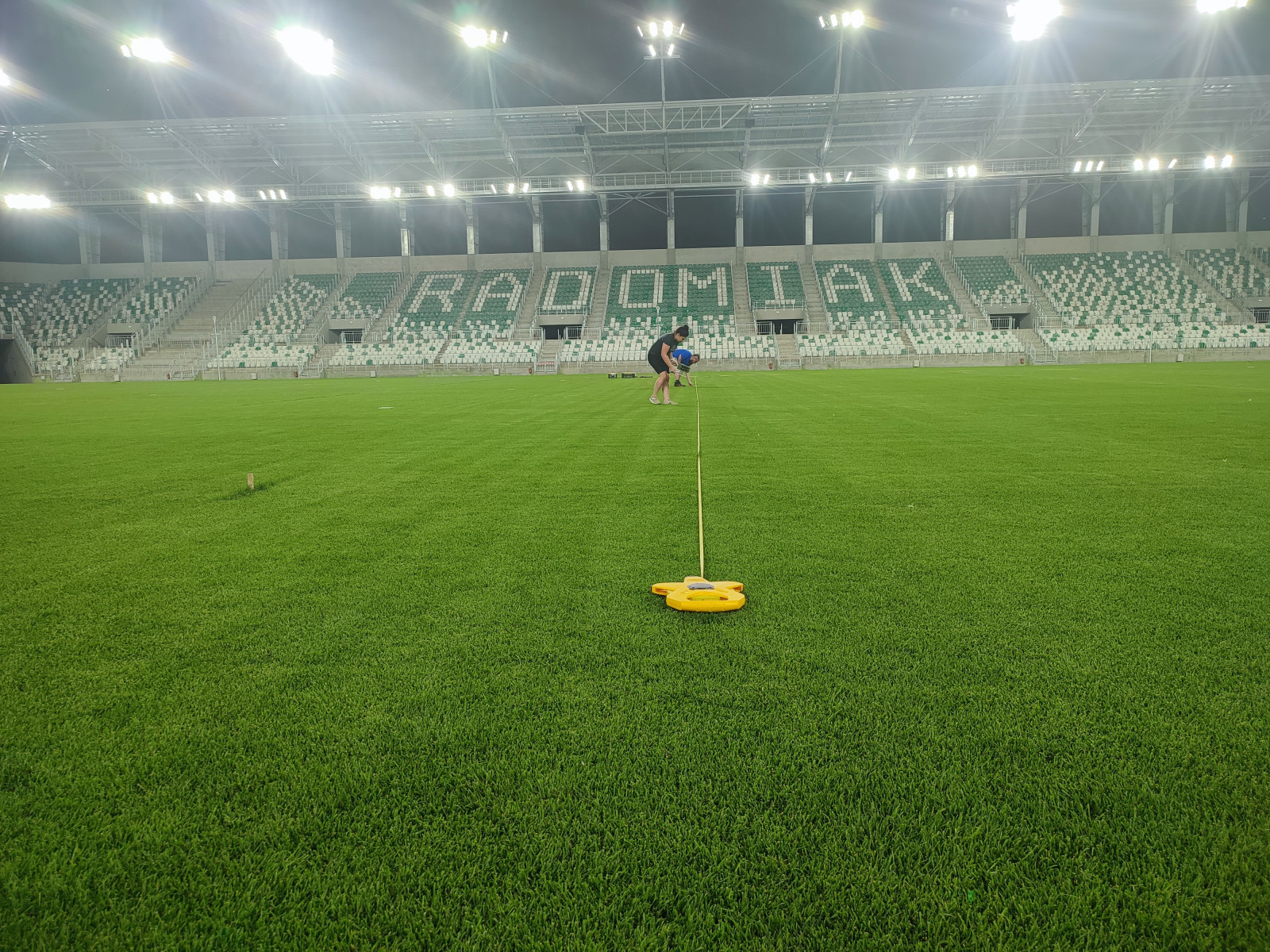 — Jest badana jego intensywność, równomierność, tak żeby można było sporządzić protokół, który jest podstawą dla PZPN-u i telewizji, żeby na tym stadionie rozgrywać mecze piłkarskie — mówi Górski.