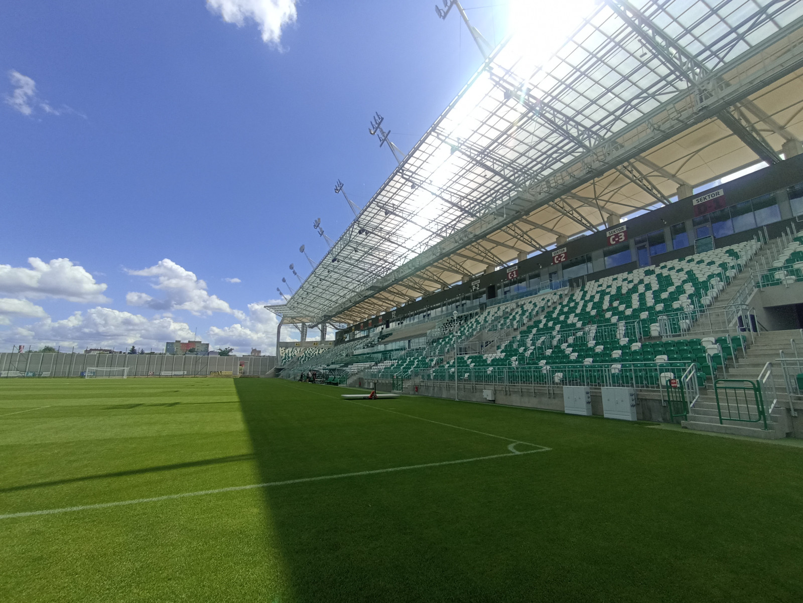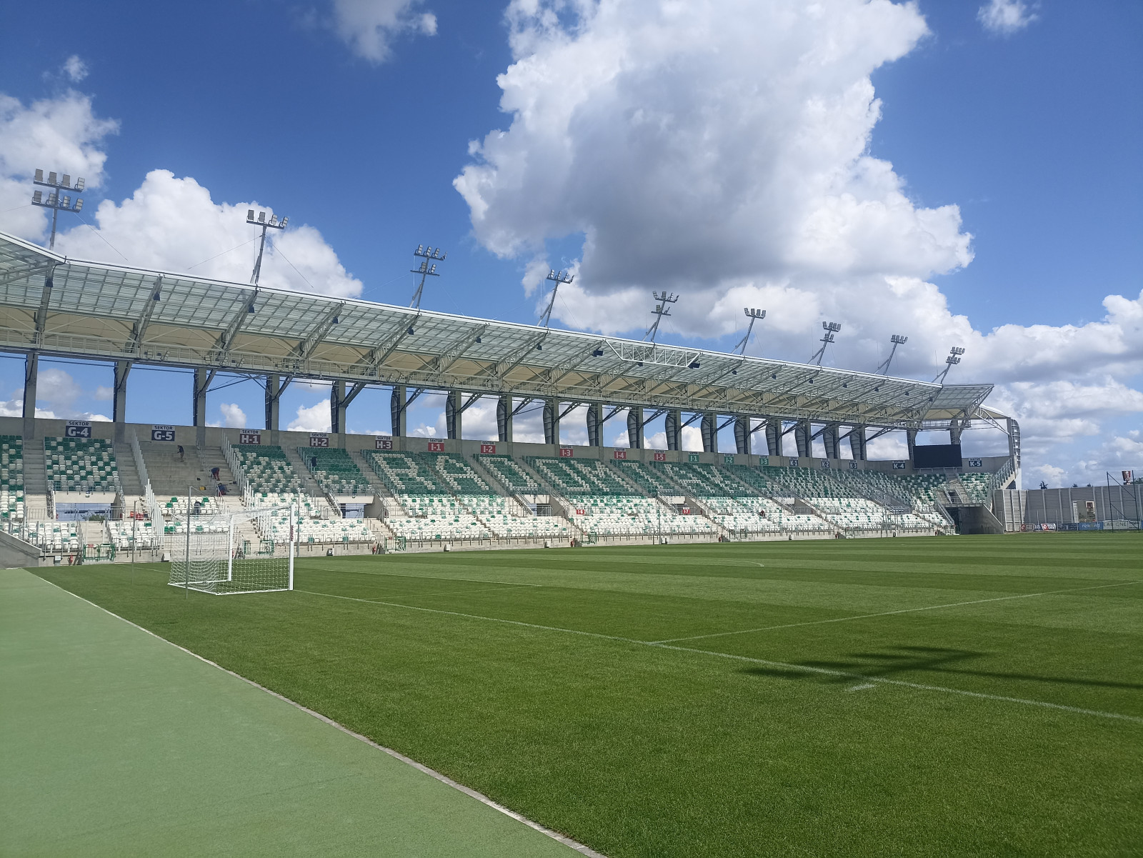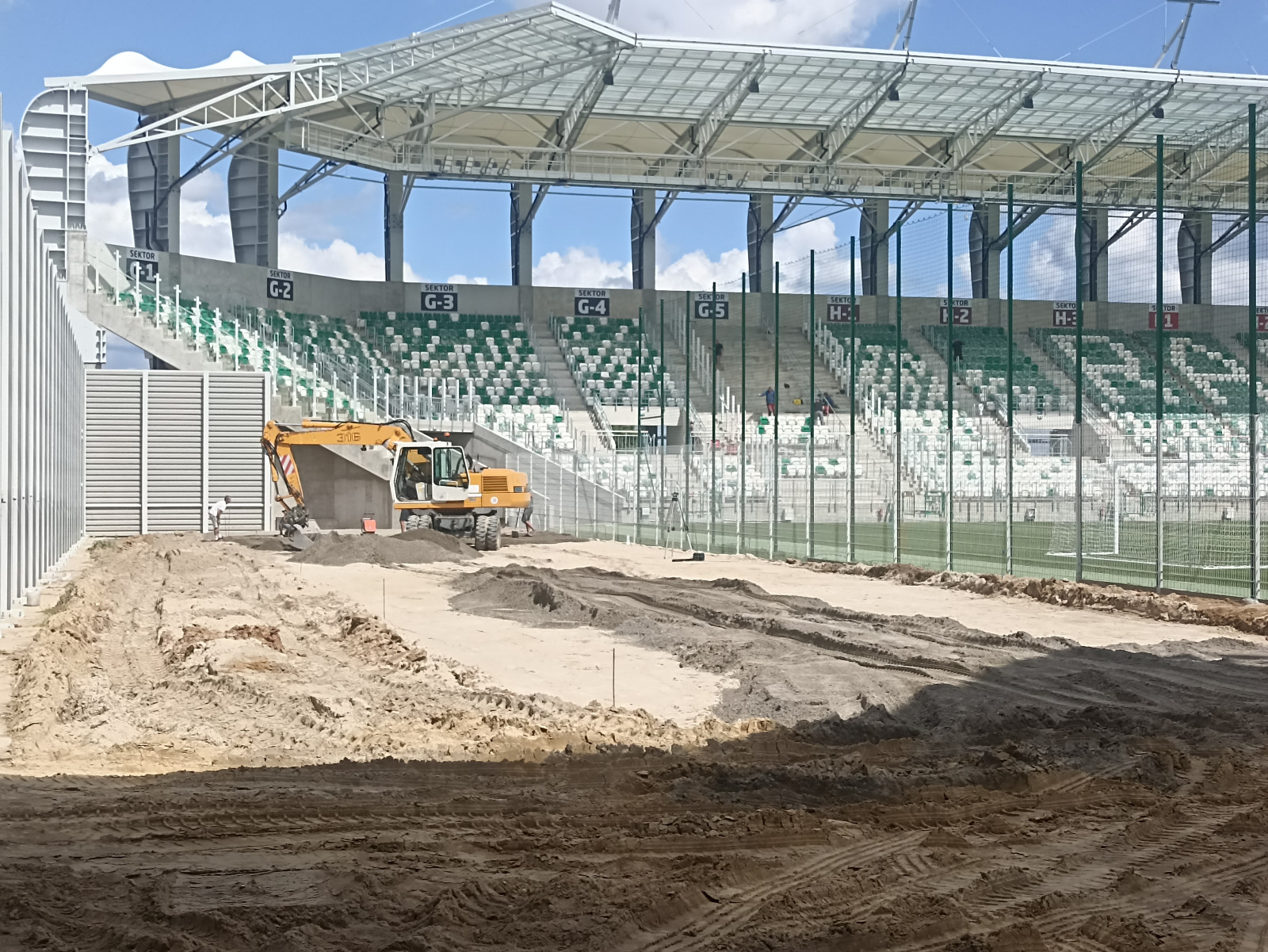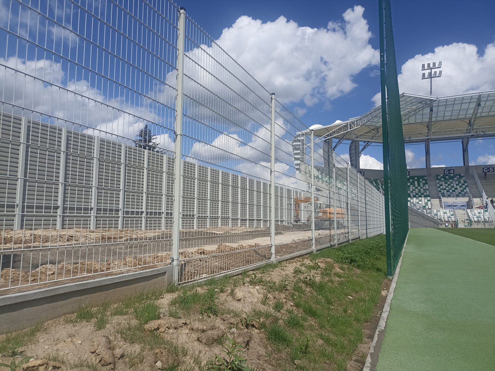 Docelowo, zgodnie z policyjnymi wymogami, zostanie utwardzony także teren od strony boisk treningowych. Po zakończeniu prac związanych z instalacją zachodniego sektora odbywać się będą jeszcze odbiory.