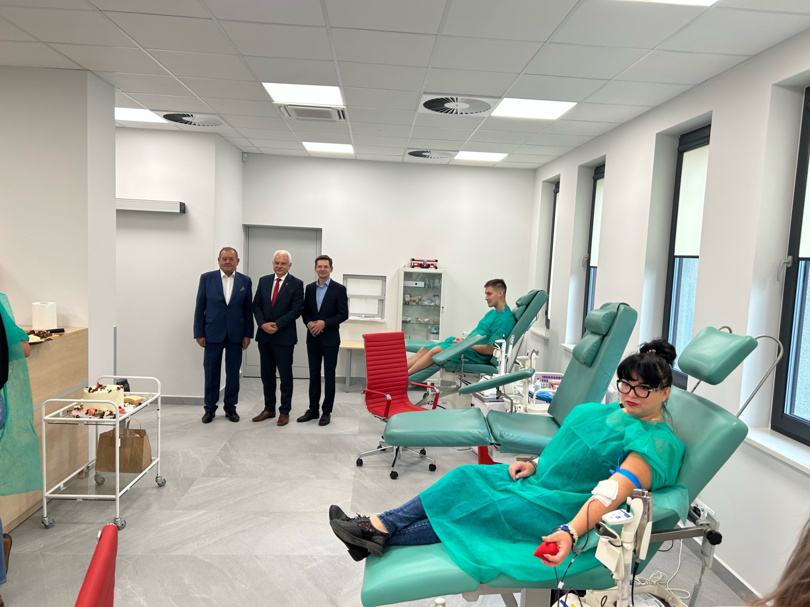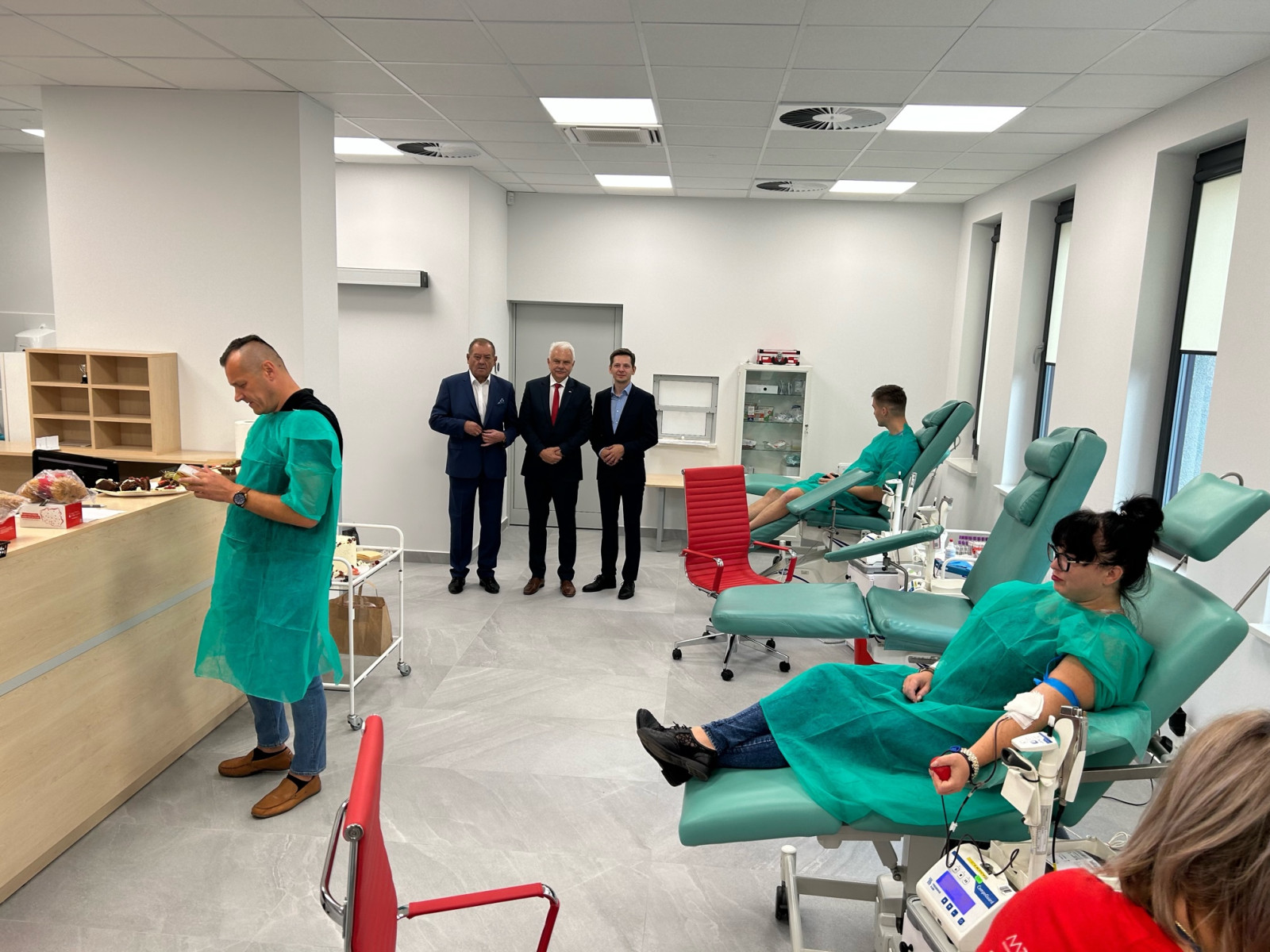 Wiceminister Zdrowia Waldemar Kraska zaznacza, że w Centrum przy ul. Gospodarczej znajduje się siedem stanowisk do oddawania krwi, laboratorium, a także centrum szkoleniowe.
