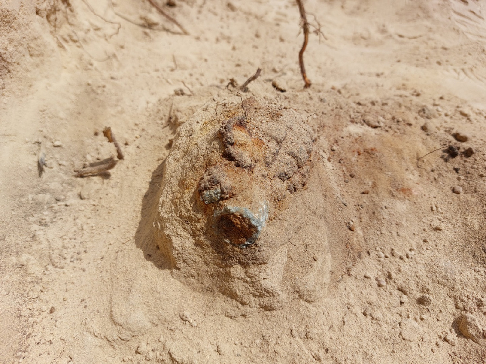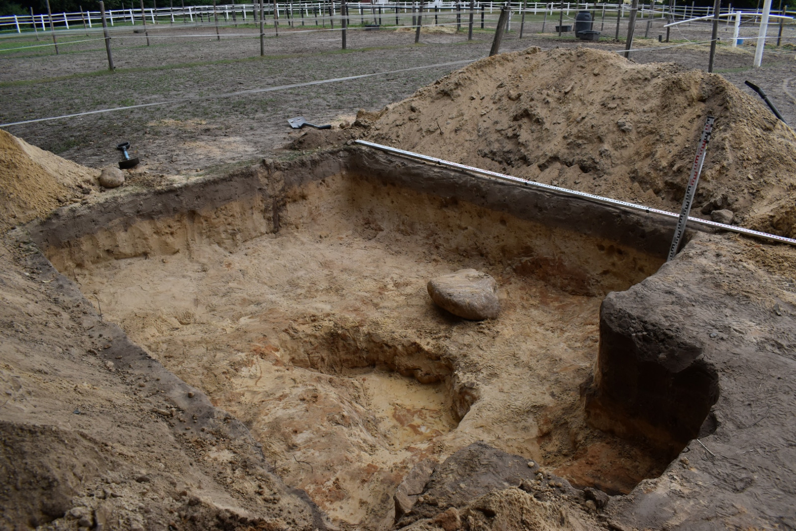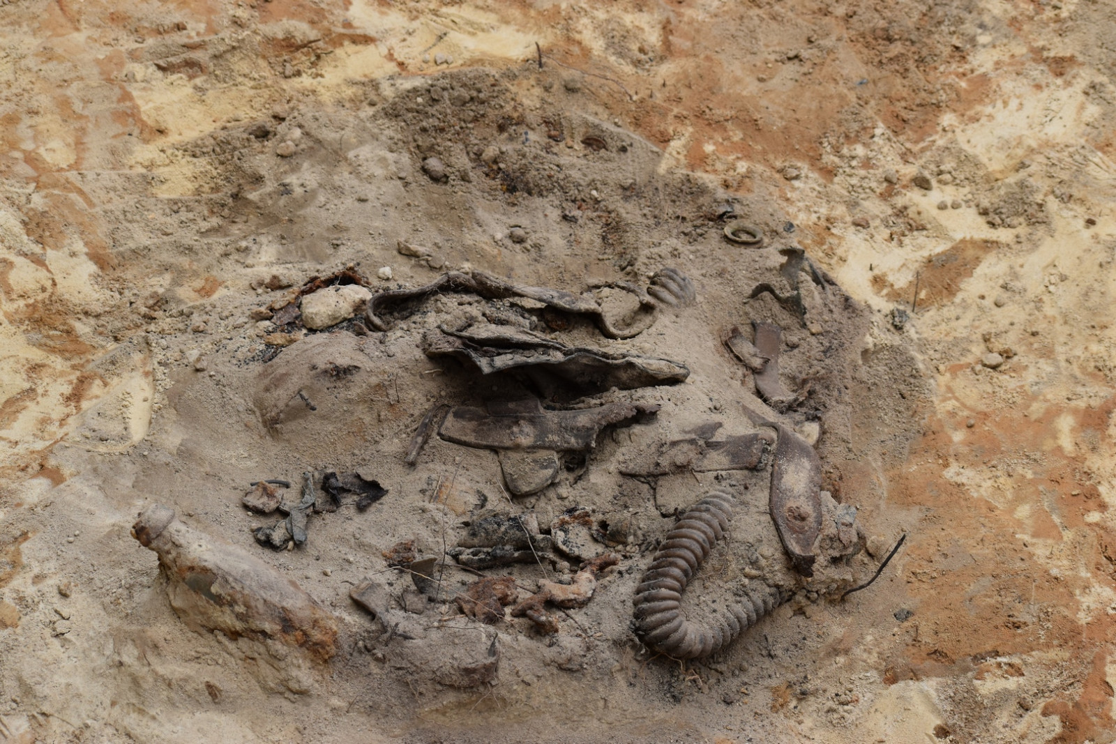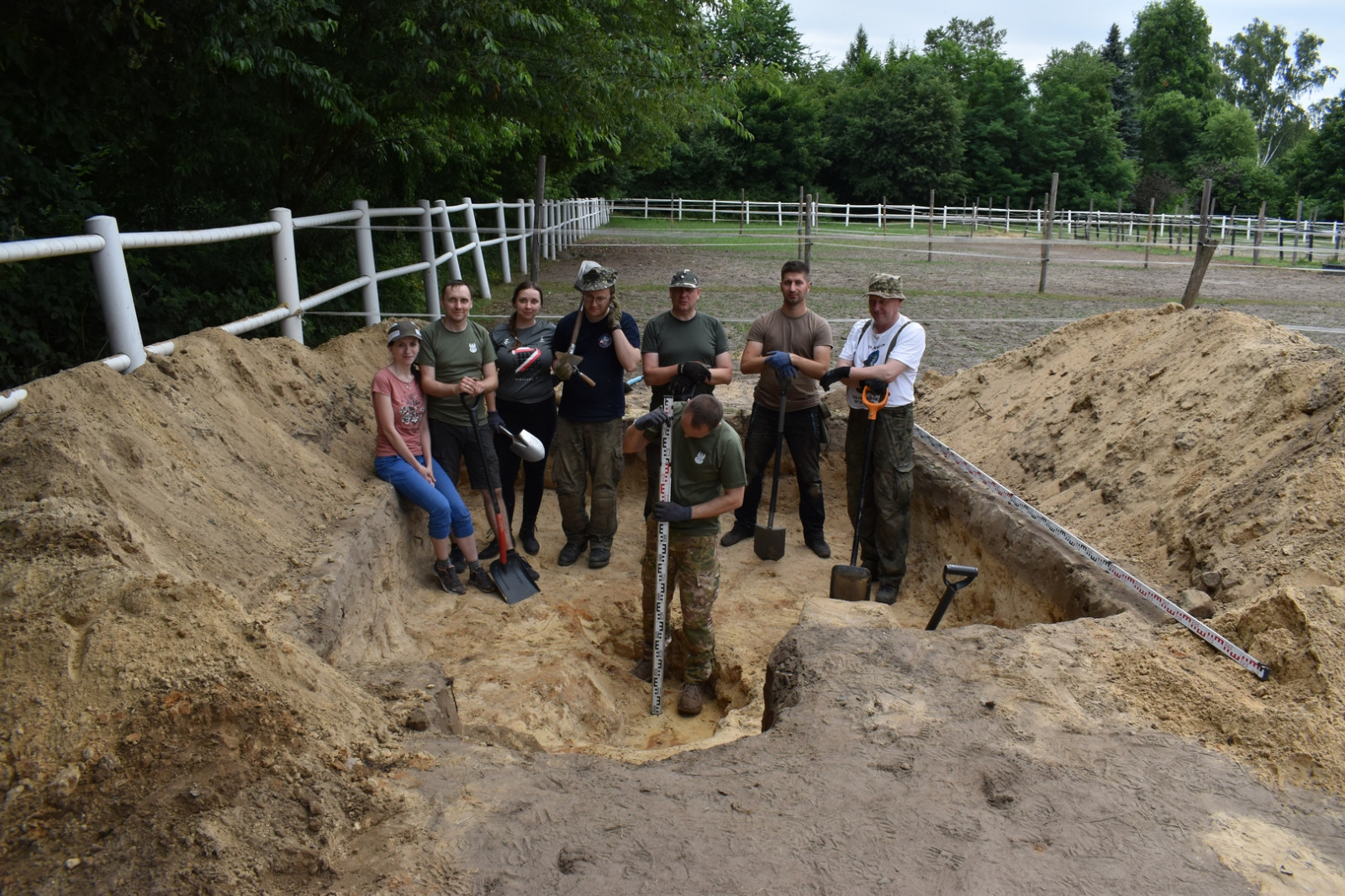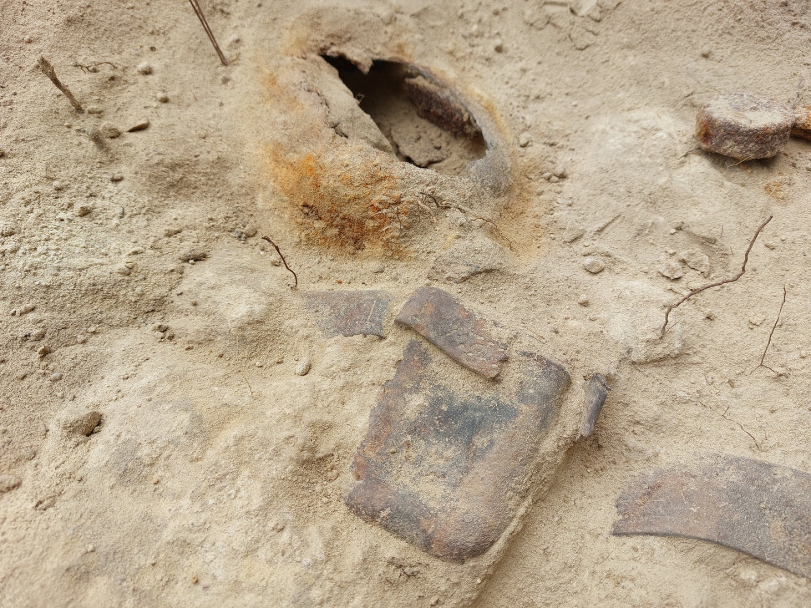 W trakcie badań natrafiono na dwa granaty — zaczepny wz. 24 i obronny wz. 33. Ze względu na obecność materiałów niebezpiecznych, na miejsce wezwana została Policja, a następnie saperzy, którzy po dokonaniu czynności służbowych umożliwili dalsze prowadzenie badań.