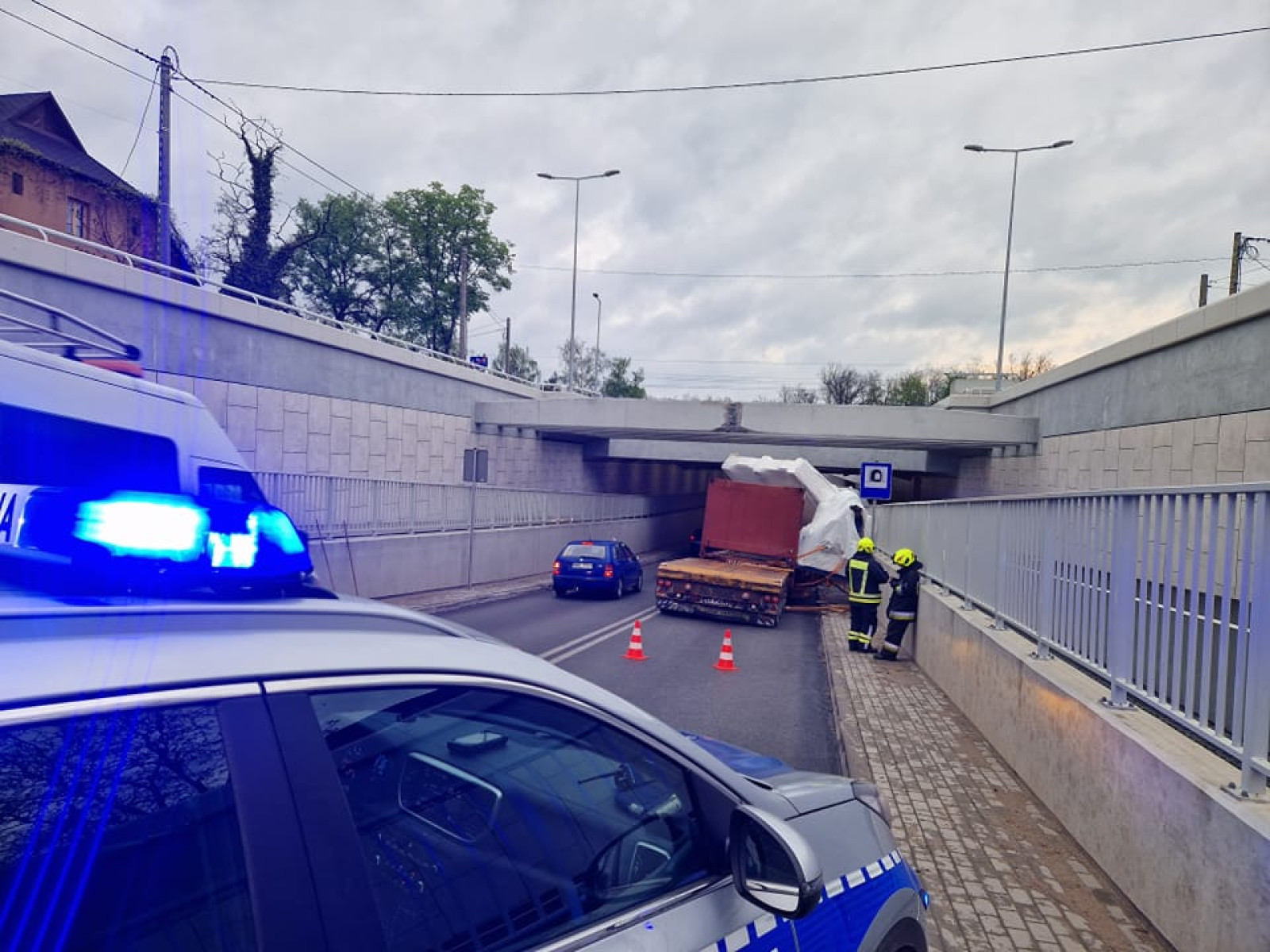 Około godziny 05:00 rano tir próbował przejechać tunelem pod wiaduktem kolejowym, po czym utknął w ciągu ulicy Piłsudskiego. Na miejscu przeprowadzono już ekspertyzę nadzoru budowlanego.