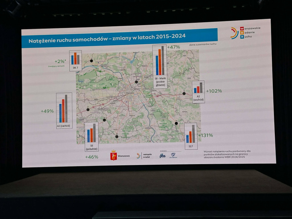 Dwukrotny wzrost wjazdów i wyjazdów samochodów do i z Warszawy w ciągu dziesięciu lat. A do tego znaczną część ruchu generują mieszkańcy, a nie przyjezdni. Stołeczne władze zaprezentowały Warszawskie Badanie Ruchu z ostatniej dekady.
