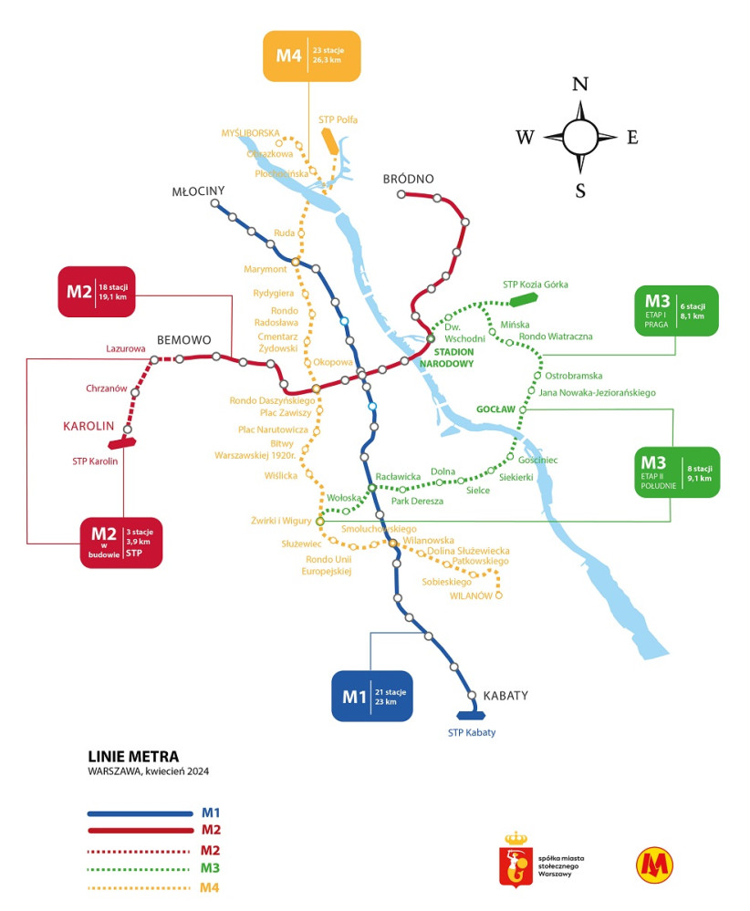 Wybrano firmę, która wykona prace przedprojektowe dla IV linii warszawskiego. Firma Metroprojekt przygotuje również koncepcję przebiegu linii M4 i dokumentację niezbędną do realizacji kolejnych etapów planowanej inwestycji. Wyniki tych prac będą znane w 2027 roku.