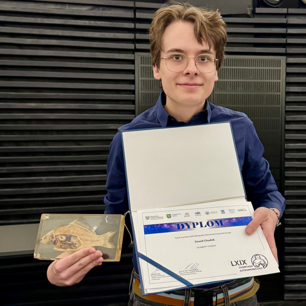 Dawid Chudzik z XIV Liceum Ogólnokształcącego im. Stanisława Staszica w Warszawie zwyciężył w finale 69. Olimpiady Astronomicznej w Chorzowie. Pierwszych pięciu laureatów zawodów będzie reprezentować Polskę podczas tegorocznej Międzynarodowej Olimpiady z Astronomii i Astrofizyki w Hanoi.