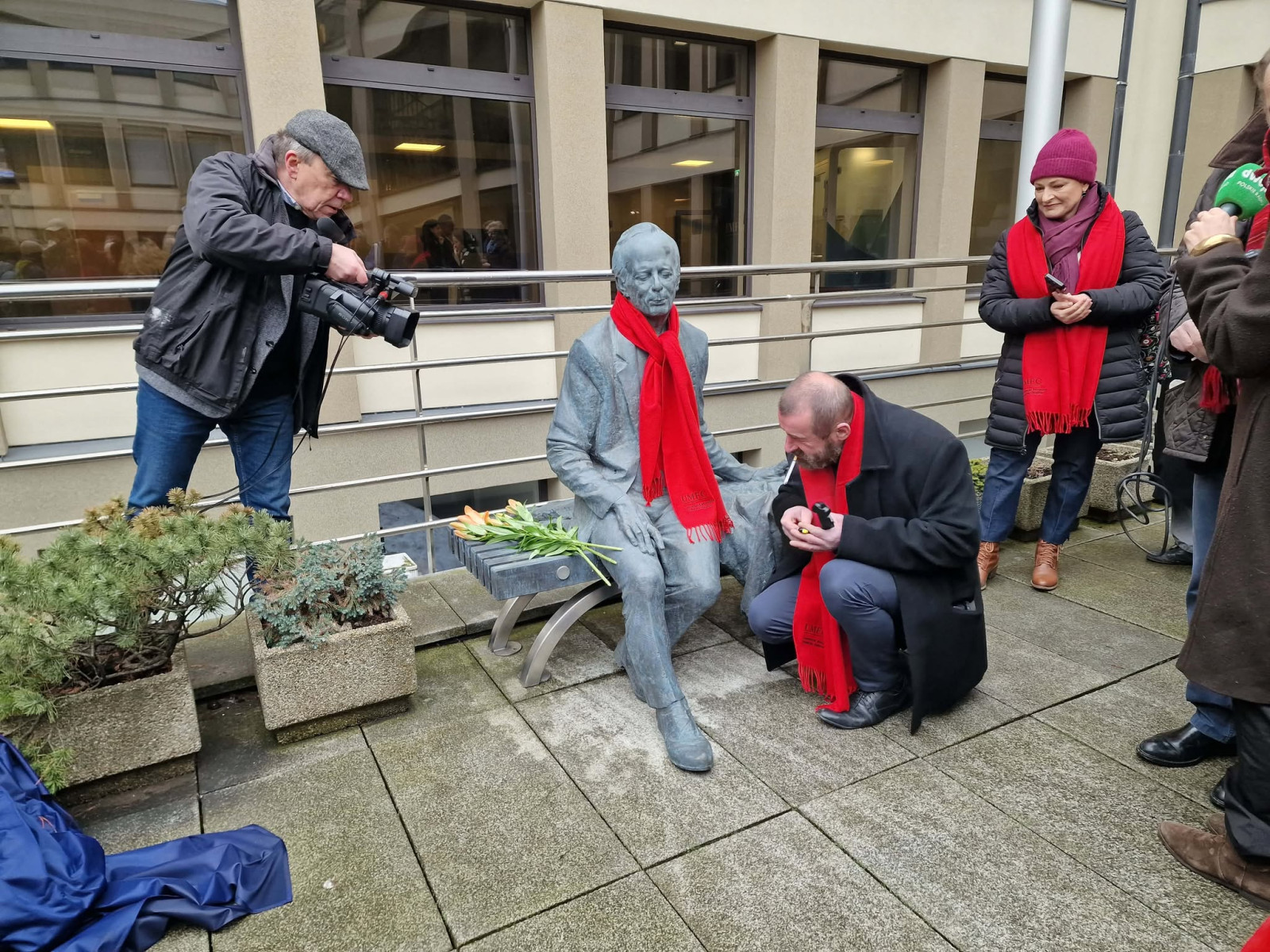 Rzeźba upamiętniająca Janusza Olejniczaka odsłonięta. „To opowieść o wybitnej postaci”