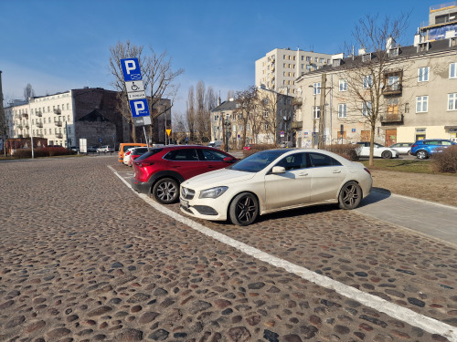 Ulica jest objęta Strefa Płatnego Parkowania Niestrzeżonego. W niektórych miejscach pojawiły się wydzielenia linią ciągłą. To nie są jednak miejsca parkingowe, a poszerzenie chodnika.
