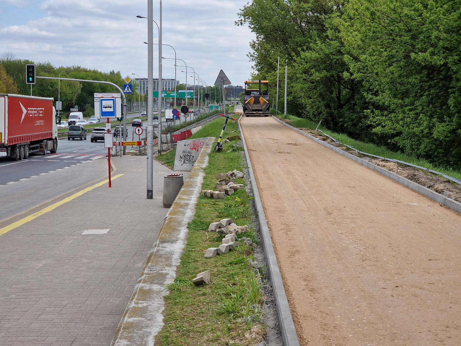Ścieżka rowerowa na Wale Miedzeszyńskim nie zostanie otwarta przed majówką - dowiedziało się Radio dla Ciebie. Stan przebudowy drogi w okolicy ulicy Fieldorfa sprawdziliśmy na prośbę słuchacza, który skontaktował się z nami przez zakładkę „Zgłoś temat”.