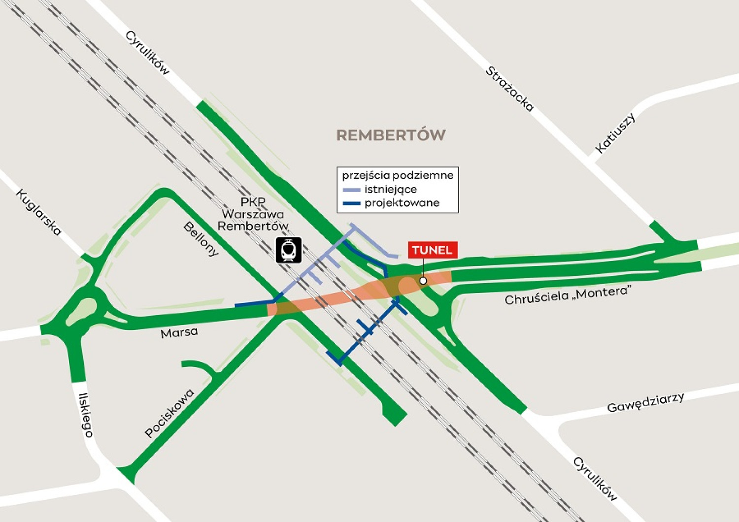 Prace przy drugim z obiektów rozpoczną się jeszcze w tym roku, z kolei w środę została podpisana umowa między miastem Warszawa a PKP PLK SA na współfinansowanie budowy tunelu łączącego ul. Marsa z al. gen. Antoniego Chruściela „Montera”.