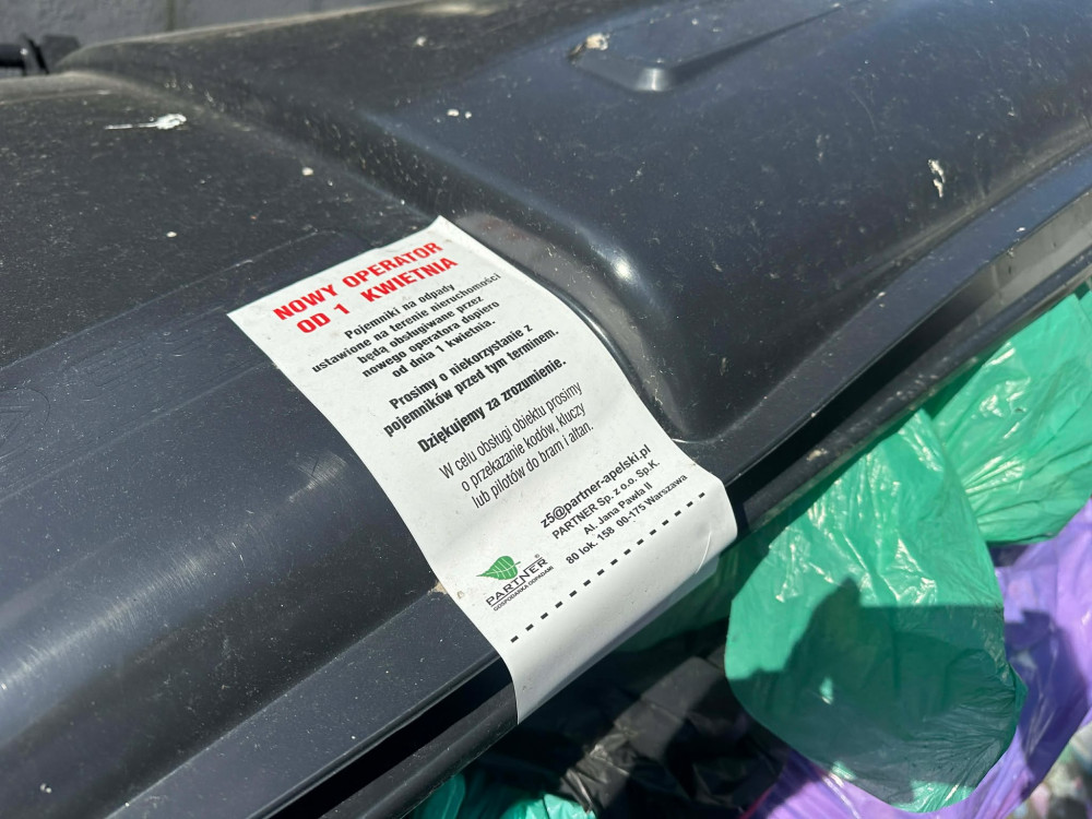 Na plombach jest wyraźnie napisane, że nowy operator wywóz odpadów rozpocznie 1 kwietnia, jak podkreśla rzecznik prasowy Miejskiego Przedsiębiorstwa Oczyszczania Jakub Turowicz.