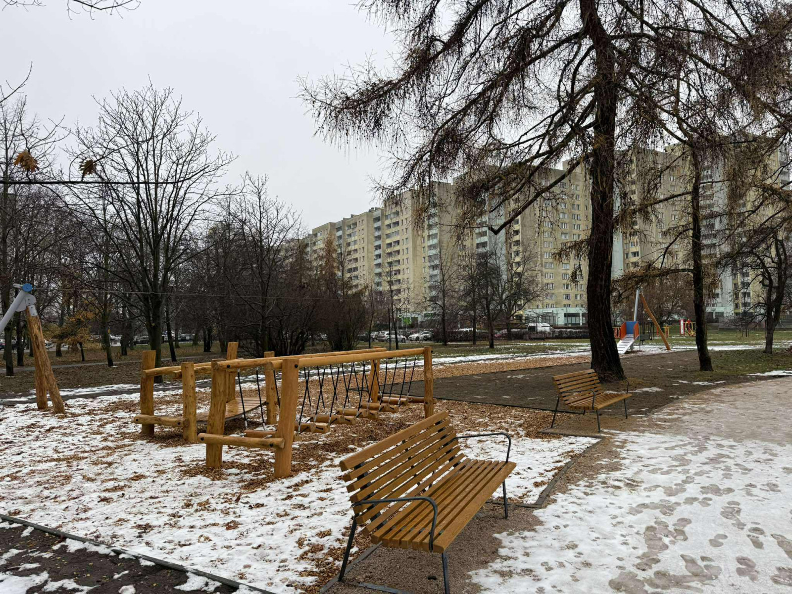Kilka drewnianych bel za pół mln zł. Nowy plac zabaw na Targówku