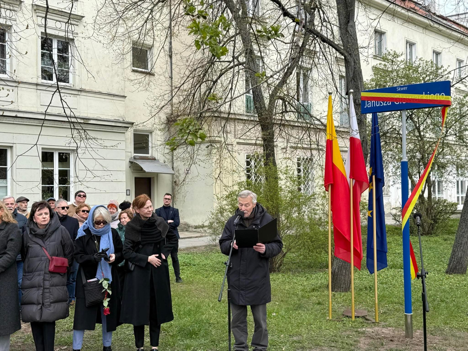 – Janusz Głowacki był nie tylko bardzo czułym i czujnym obserwatorem otaczającej go rzeczywistości, ale także życia społecznego i życia miast. Chcemy pamiętać o wybitnych artystkach i artystach Warszawy i o tym, że to miasto nie byłoby takie, jakie jest dzisiaj bez ich wkładu. Janusz Głowacki jest taką osobowością, którą Warszawa chce zachować w swojej pamięci, dlatego powstał ten skwer na Powiślu. Mam nadzieję, że będzie on nie tylko w tych najbliższych dniach, ale też w kolejnych latach, przypominał o tej wybitnej osobie, o warszawiaku, który wniósł wiele do koloru tego miasta – powiedziała zastępca prezydenta miasta Aldona Machnowska-Góra.