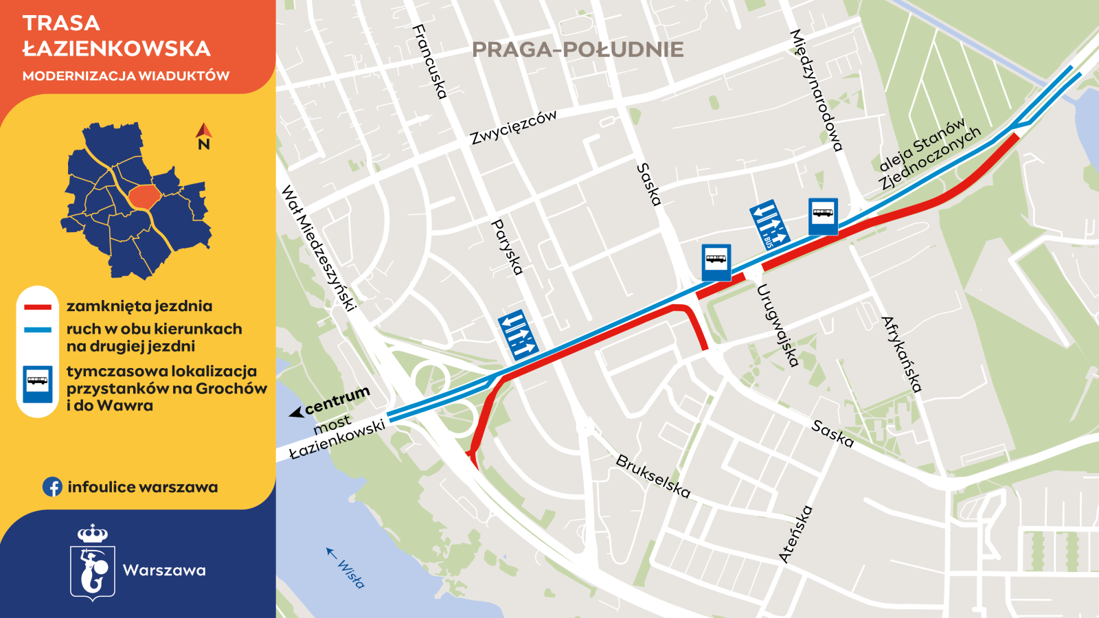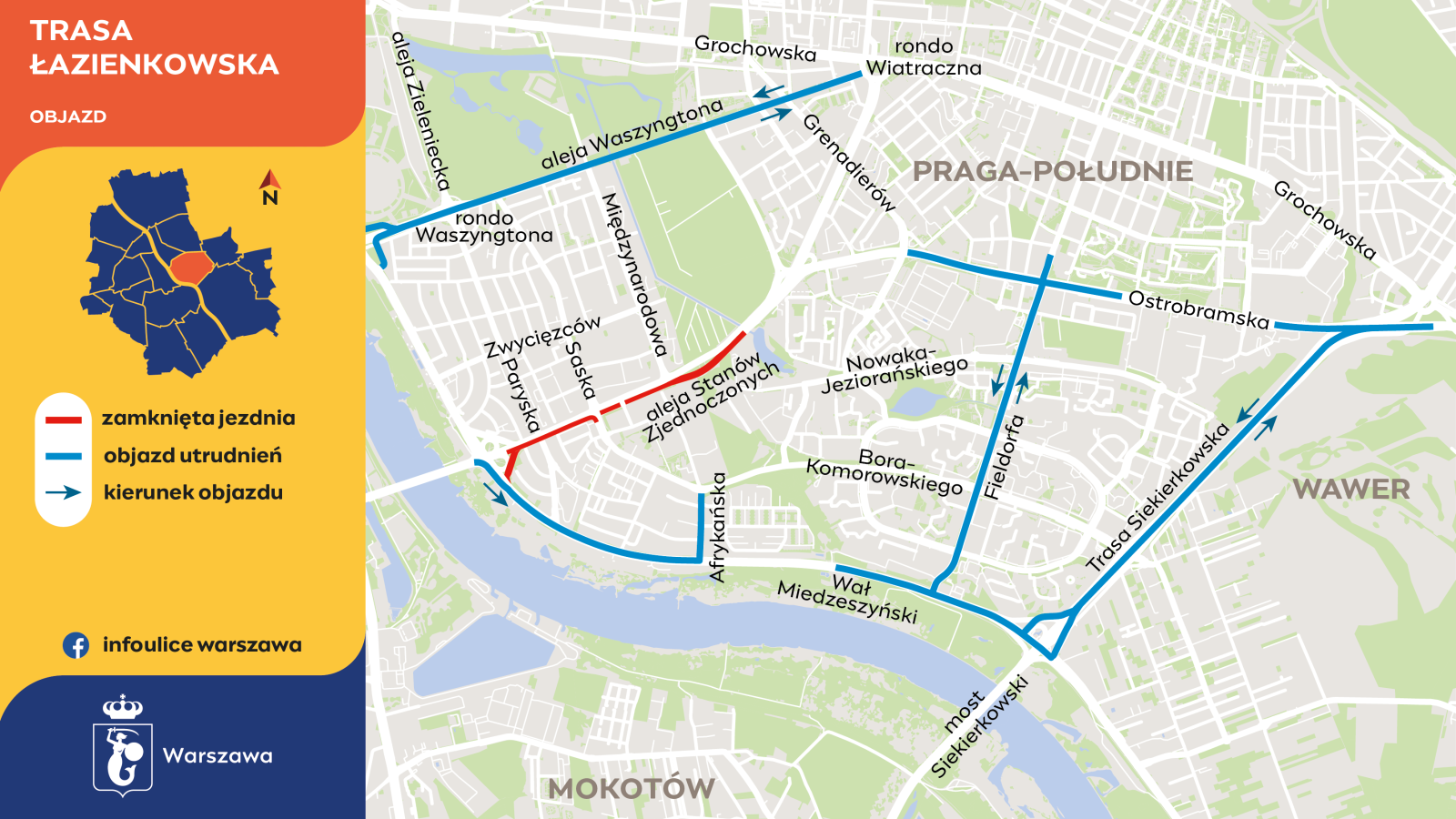 W piątek, 6 czerwca, po godzinie 22:00 kierowcy wjadą na przebudowaną jezdnię Trasy Łazienkowskiej – pomiędzy ulicą Międzynarodową a nowym wiaduktem nad Paryską. Połączenie z aleją Stanów Zjednoczonych odzyskają ulice Międzynarodowa i Saska – od strony Zwycięzców.