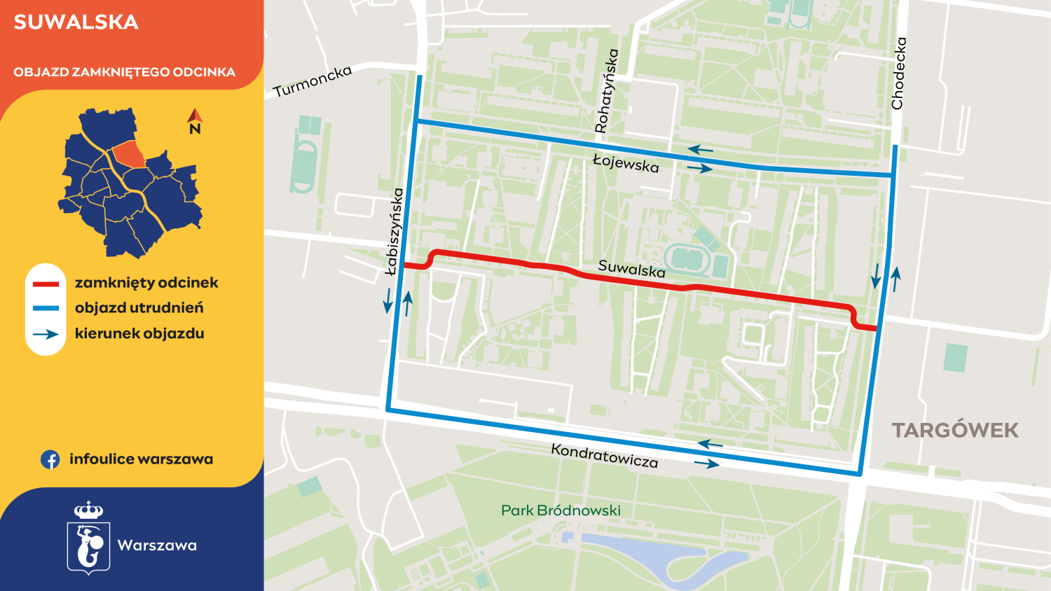 Rozpoczął się remont ulicy Suwalskiej na warszawskim Targówku. Prace są prowadzone na odcinku od Chodeckiej do Łabiszyńskiej. Przejazd został zamknięty, a kierowcy są kierowani na objazdy.