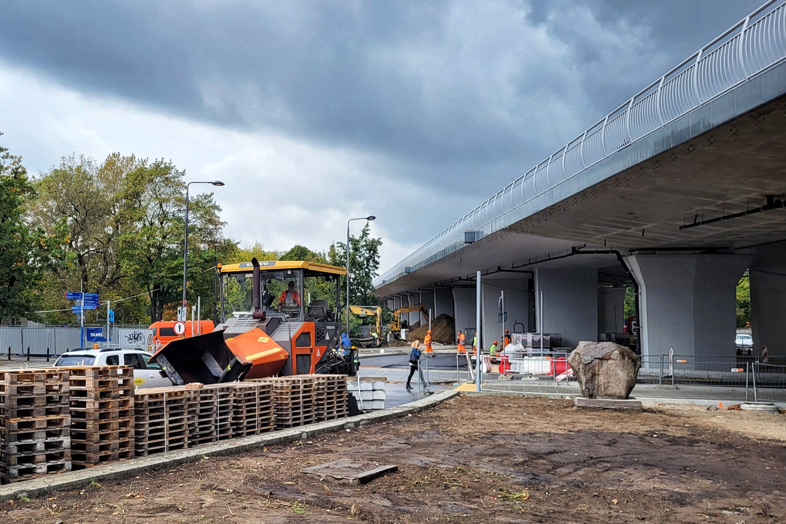 Prace drogowe na przebudowie wiaduktów Trasy Łazienkowskiej na Agrykoli są już prawie zakończone. Położenie ostatniej, ścieralnej warstwy asfaltu oznacza, że jezdnia będzie wkrótce gotowa do oddania do ruchu.