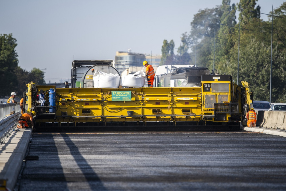Trwa asfaltowanie południowego wiaduktu Trasy Łazienkowskiej. To jedne z ostatnich prac przy obiekcie, który – podobnie jak wiadukt północny przy Agrykoli – został całkowicie przebudowany. Jak przekazał ratusz, tempo prac pozwala przypuszczać, że zakończą się one przed planowanym terminem.