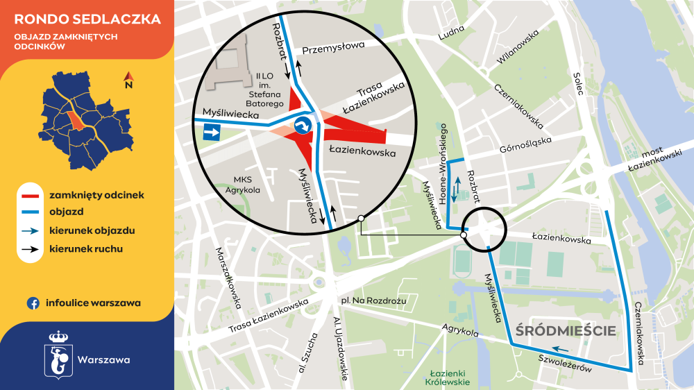 – Przez ostatni miesiąc wakacyjny została wyremontowana ulica Piękna na górze skarpy wokół Sejmu i Parku Ujazdowskiego. W tym czasie wykonawca ronda Sedlaczka i wiaduktów na Agrykoli wykorzystał to zamknięcie ulicy Pięknej, żeby zbudować wlot Myśliwieckiej w docelowym kształcie – mówi dyrektor Biura Zarządzania Ruchem Drogowym Tomasz Dombi.