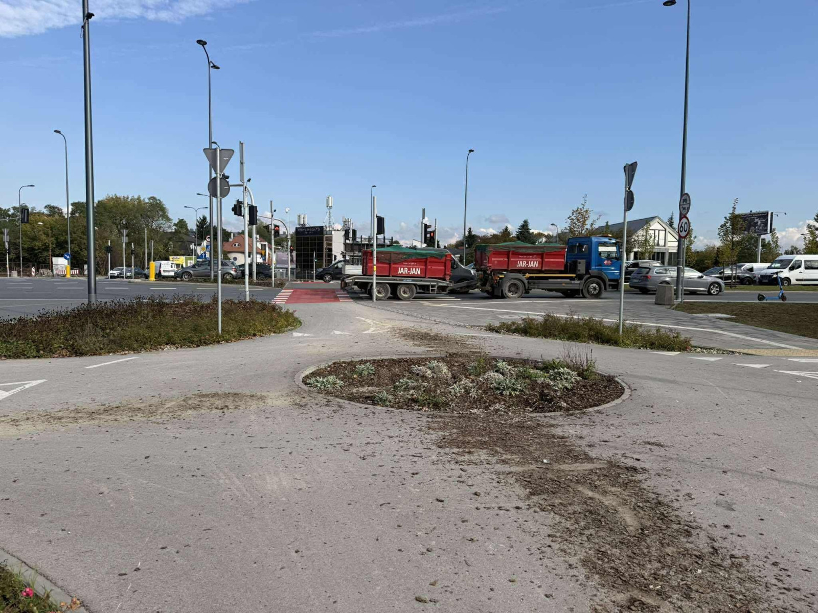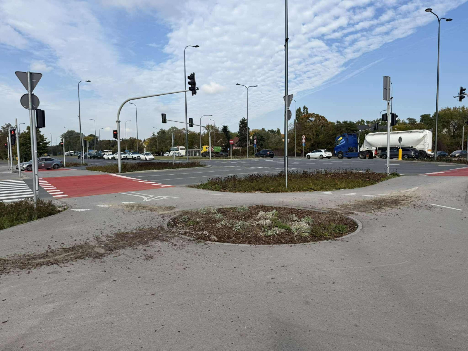 Zdemolowane zostało m.in. rondo dla rowerów u zbiegu ulic Branickiego i Przyczółkowej.