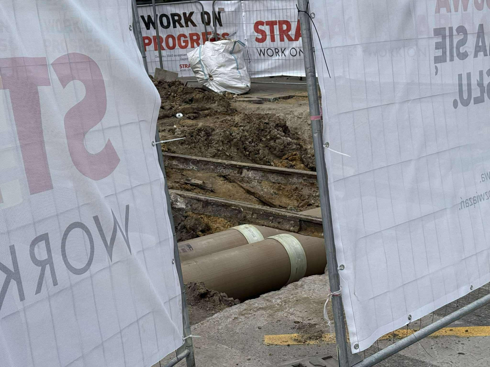 Stare tory tramwajowe odkryte przy remoncie Grzybowskiej