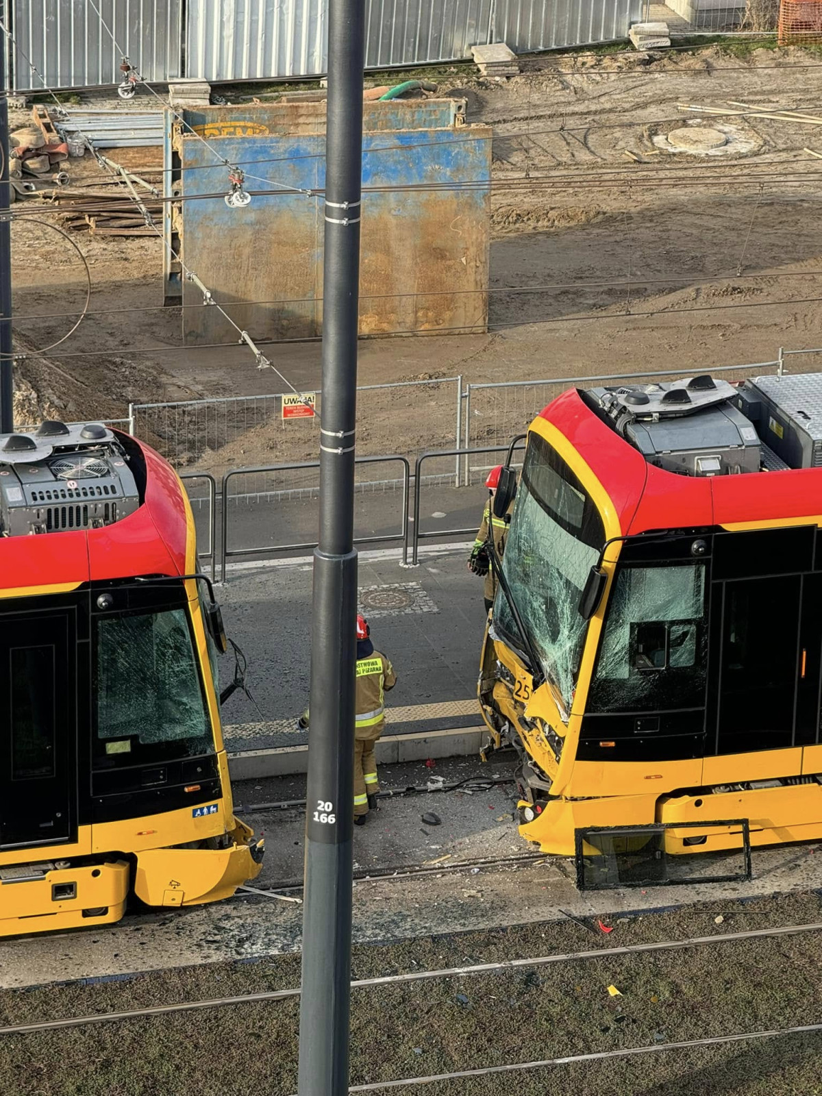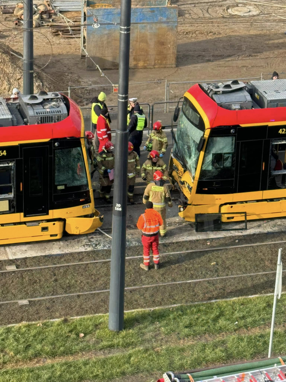 Rzecznik Tramwajów Warszawskich Witold Urbanowicz powiedział, że do zderzenia doszło na przystanku Oś Królewska w stronę Wilanowa.
