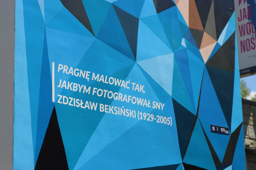 Grafika z podobizną malarza ma wymiary 226 x 750 cm i opatrzona została jego sentencją: „Pragnę malować tak, jakbym fotografował sny”.
