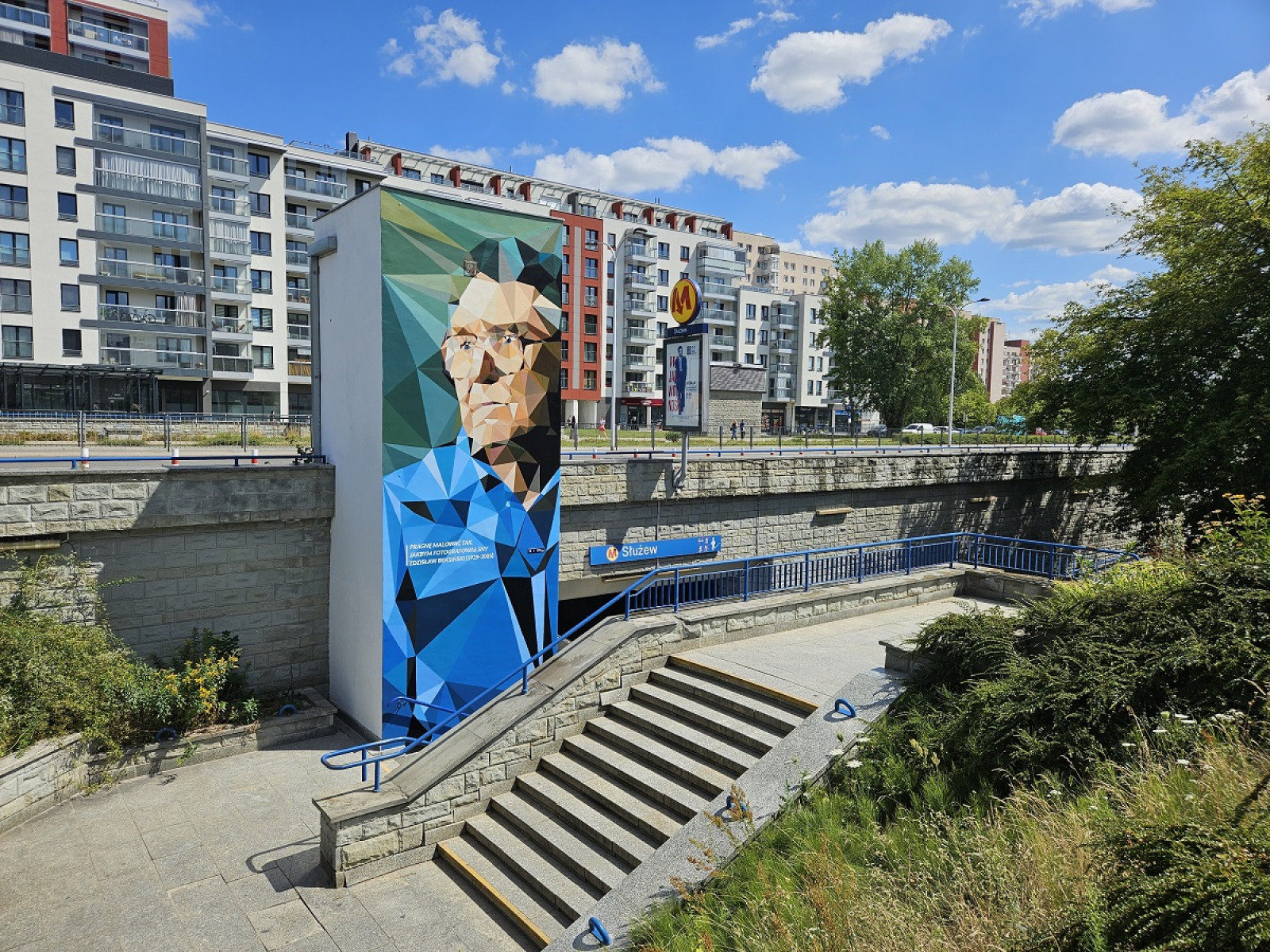 Mural przedstawiający Zdzisława Beksińskiego (1929–2005) namalowany został na zachodniej ścianie szybu windy prowadzącej na stację metra Służew w Warszawie. Projekt zabezpieczony jest powłoką anty-graffiti.