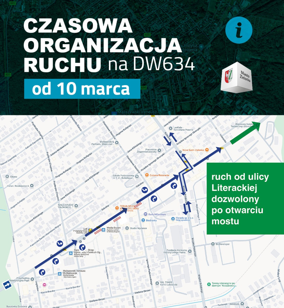 Od 10 marca zmiana w organizacji ruchu w Zielonce w związku z przebudową drogi wojewódzkiej nr 634. Jedna z trzech ulic wylotowych z miasta przez rok będzie jednokierunkowa. Mieszkańcy w tym czasie zostaną bez głównego wyjazdu z miasta w stronę Warszawy.